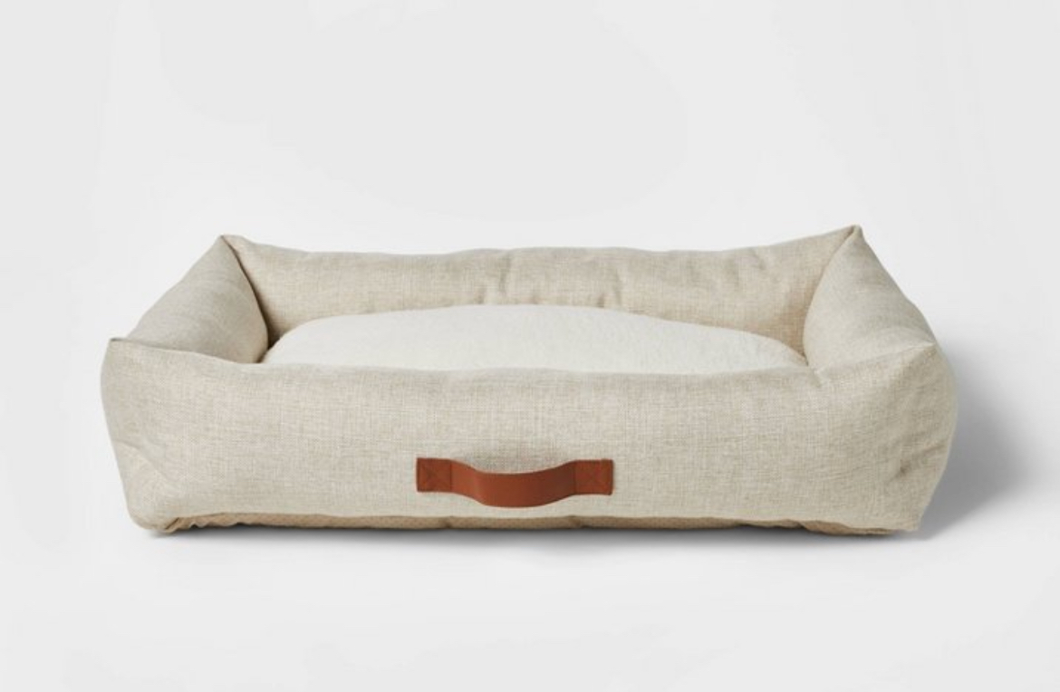 Your dog will love relaxing in this Neutral 4-Sided Bolster Dog Bed from Boots & Barkley™. This rectangular dog bed in a neutral cream color coordinates with any home decor. Designed with raised bolster sides, it creates an enclosed space for your pet to sleep and rest their head. The soft foam fill provides cushioned comfort and support, while the faux-shearling surface offers them a soft and cozy surface. The nonskid base helps keep the bed in place, and the carrying handle offers easy portability.