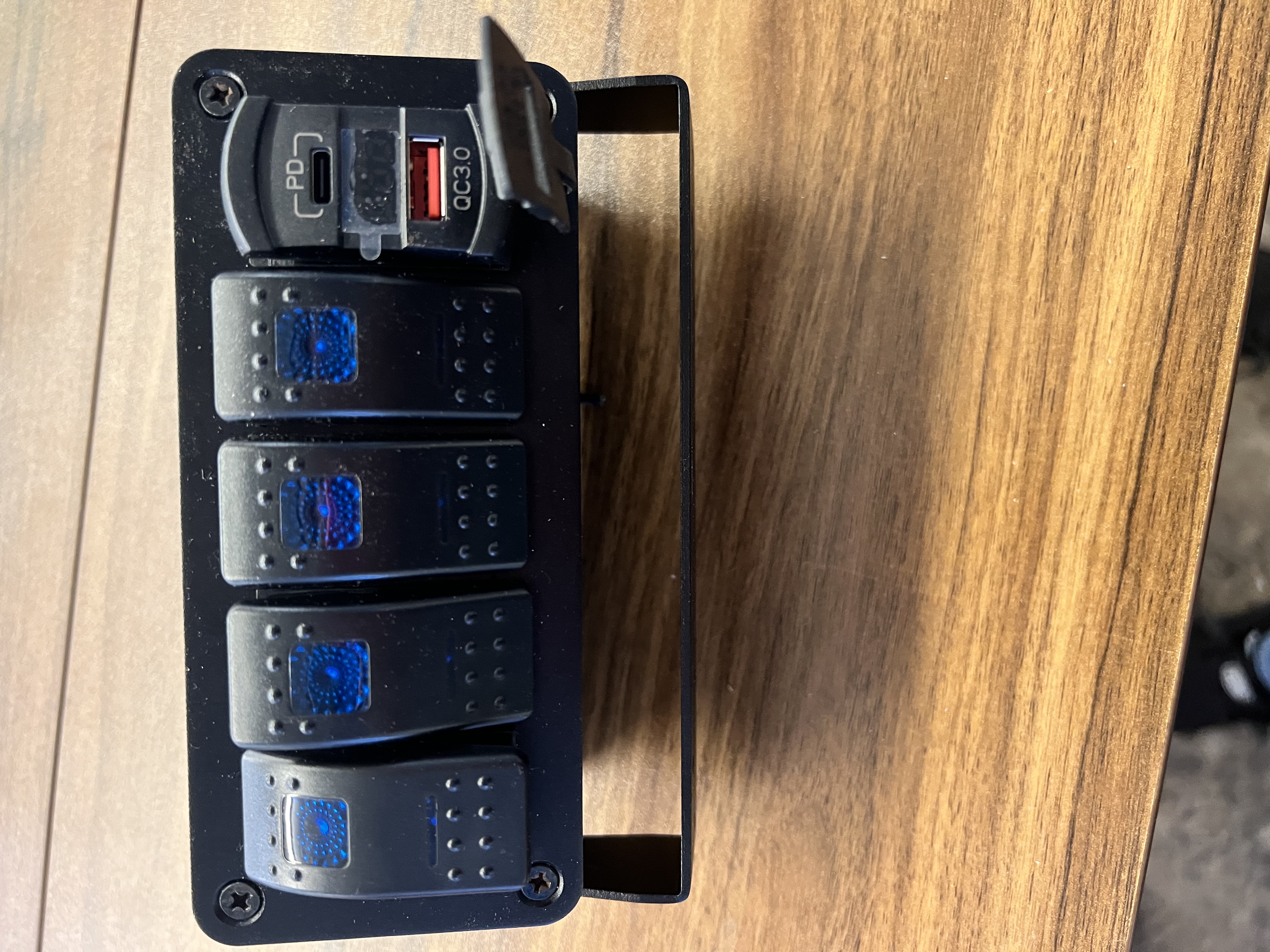 Multi-Function designed: This switch box is integrated with 4x20 amps Rocker switches rated at 12VDC and PD Type C& QC 3.0 USB charger with LED voltmeter. Suitable for most 12V-24V DC cars, UTVs/ATVs, trucks, trailers, RVs, caravans, buses, marine boats, yachts etc. Weatherproof Box: The switch box is designed to be waterproof,weatherproof and splash proof. The box is made of quality aluminum and protects the switches against short circuit and damage. All switches are pre-wire for easy installation. USB Charger and Voltmeter: PD Type C and QC 3.0 USB Charger enable you charge two devices simultaneously at full speed. It works for all USB-powered devices. Makes the charger 40% faster than conventional chargers; The voltmeter is built in the center of the USB charger, clearly shows the current readings of working volts, easily notice the voltage condition of the vehicles. Surface Mount: With surface mount enclosure. The box can be mounted either on the dash board, under dashboard, middle console or anywhere on the car. The bracket can be adjusted 360 degrees.This gives you more mounting options. Wide Application: The switches allows you to control up to 4 different devices,such as Led Light Bars, Rear Lights, Rock Lights, Windshield Lights,Off road Lights, Sasquatch Lights, Zombie lights and Wench power, etc. The complimentary transparent and night glow stickers enables you to DIY the switch according to your preference. Package Includes: 4 Gang pre-wired switch box with PD Type C and QC 3.0 USB charger and voltmeter, 1X transparent stickers,1X night glow stickers, 6 screws.