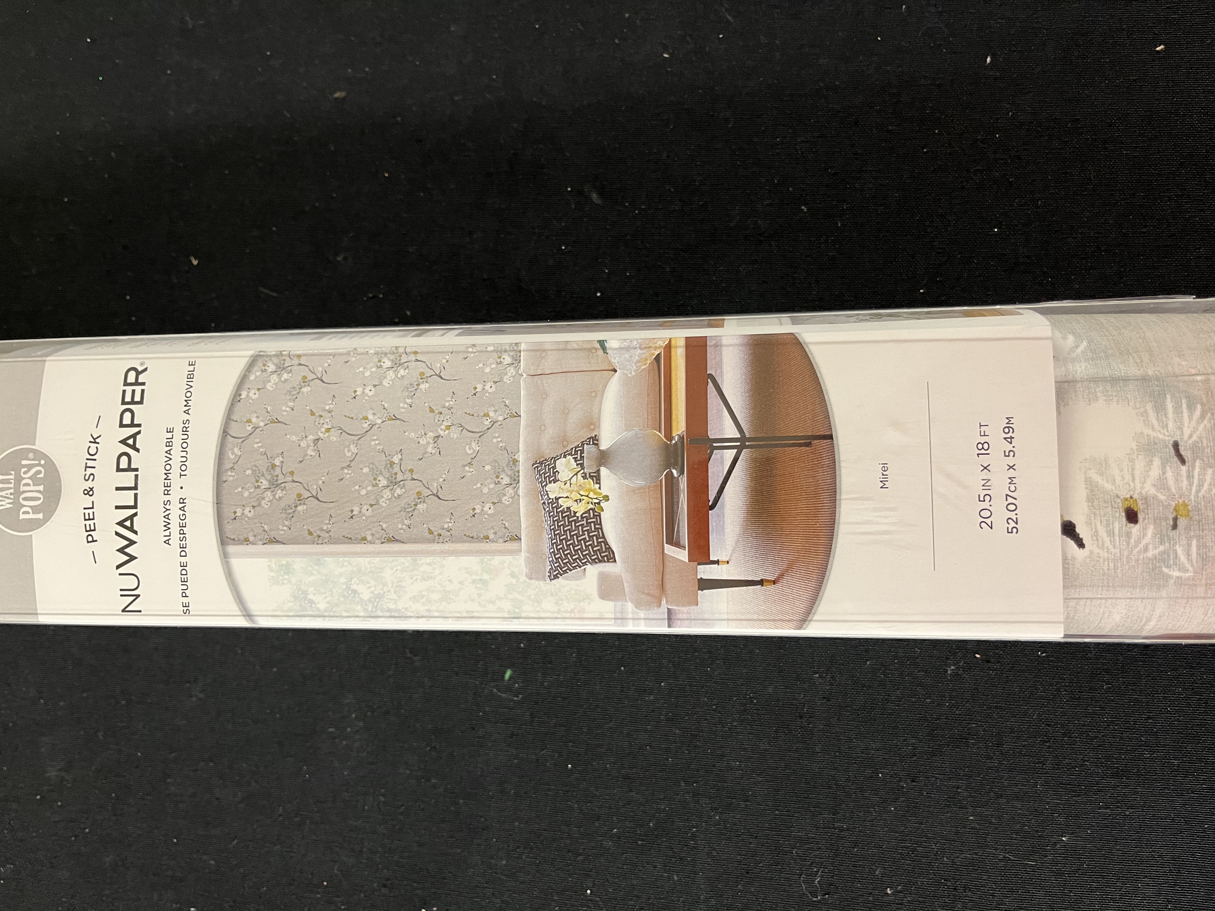 Inspired by Japanese blossoms, this floral pattern has a timeless elegance. The blue, yellow, and white flowers sprawl over a grey linen print background. Mirei peel and stick wallpaper comes on one roll that measures 20.5 inches wide by 18 feet long.