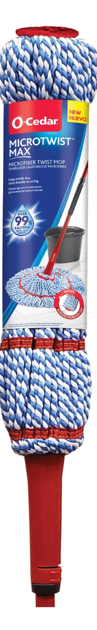 Effortless mopping, one twist at a time. The Microfiber Twist Mop is designed to keep hands dry with intuitive wringing, the MicroTwist™ Microfiber Twist Mop is made with a swiveling handle to regulate the amount of water with each use. The Twist Mop is complete with an extra large 16-inch microfiber mop head to remove over 99% of bacteria with water*.