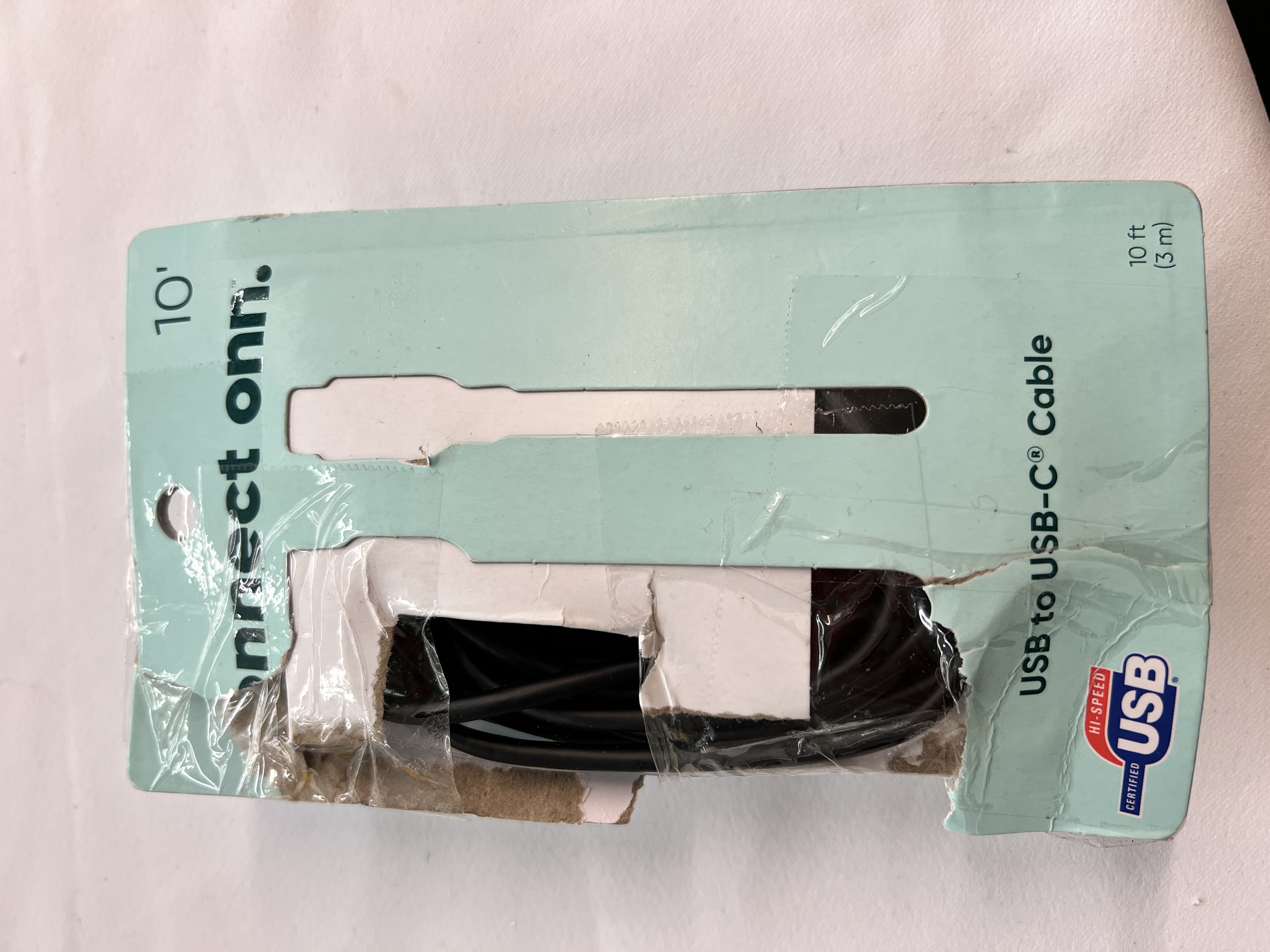 onn. 10ft USB to USB-C Cable, Black, Compatible with USB-C Devices