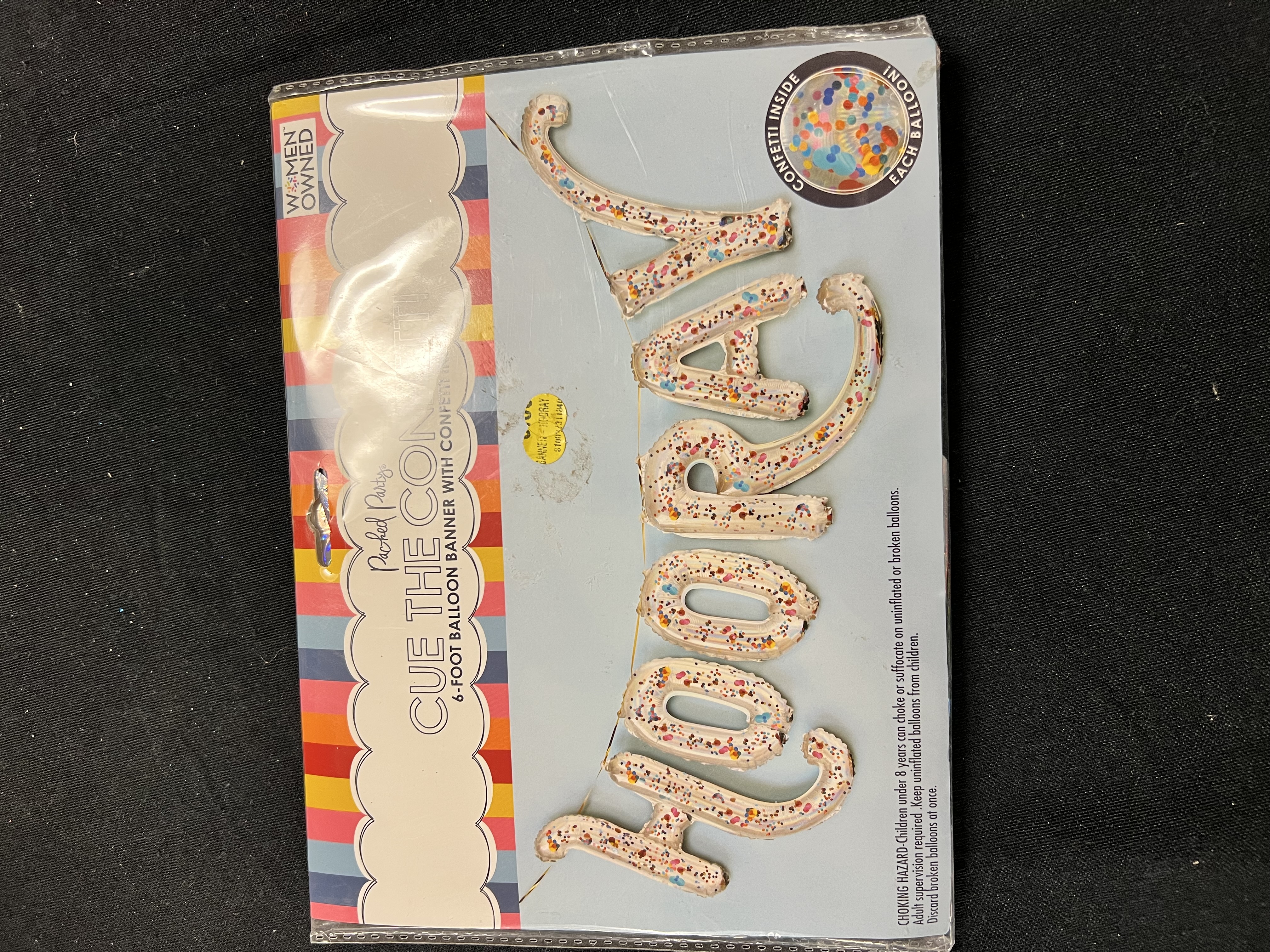 Packed Party 'Cue the Confetti' Multi-Color Confetti-Filled Balloon Banner, 6-Foot, Spells "Hooray"