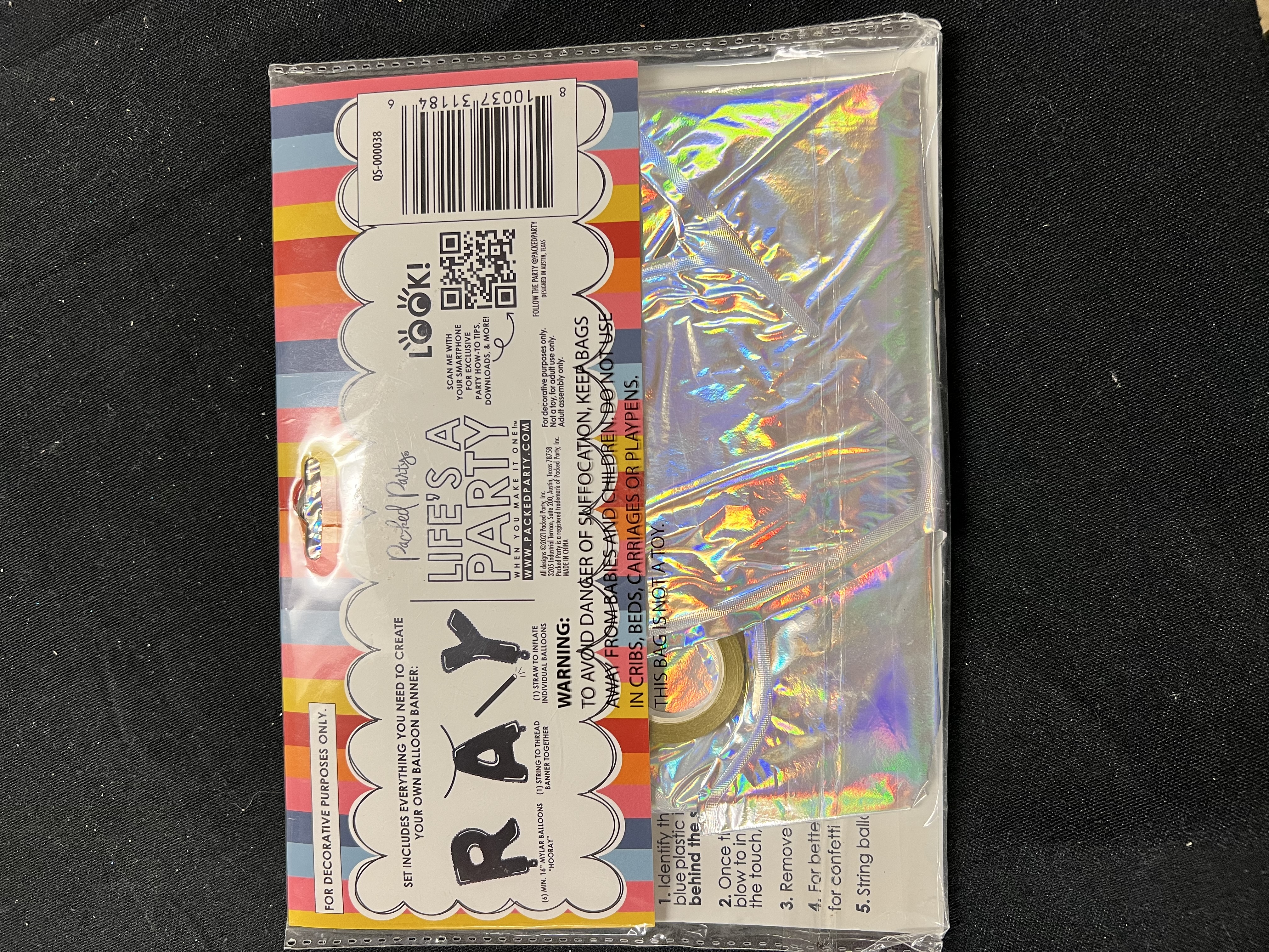 (6) MIN. 16"Mylar Balloons "HOORAY". (1) String to thread banner together. (1) Straw to inflate individual balloons. Iridescent Foil Self-Sealing Confetti Balloon Banner. 6 - Foot Balloon Banner with Confetti Inside Each Balloon