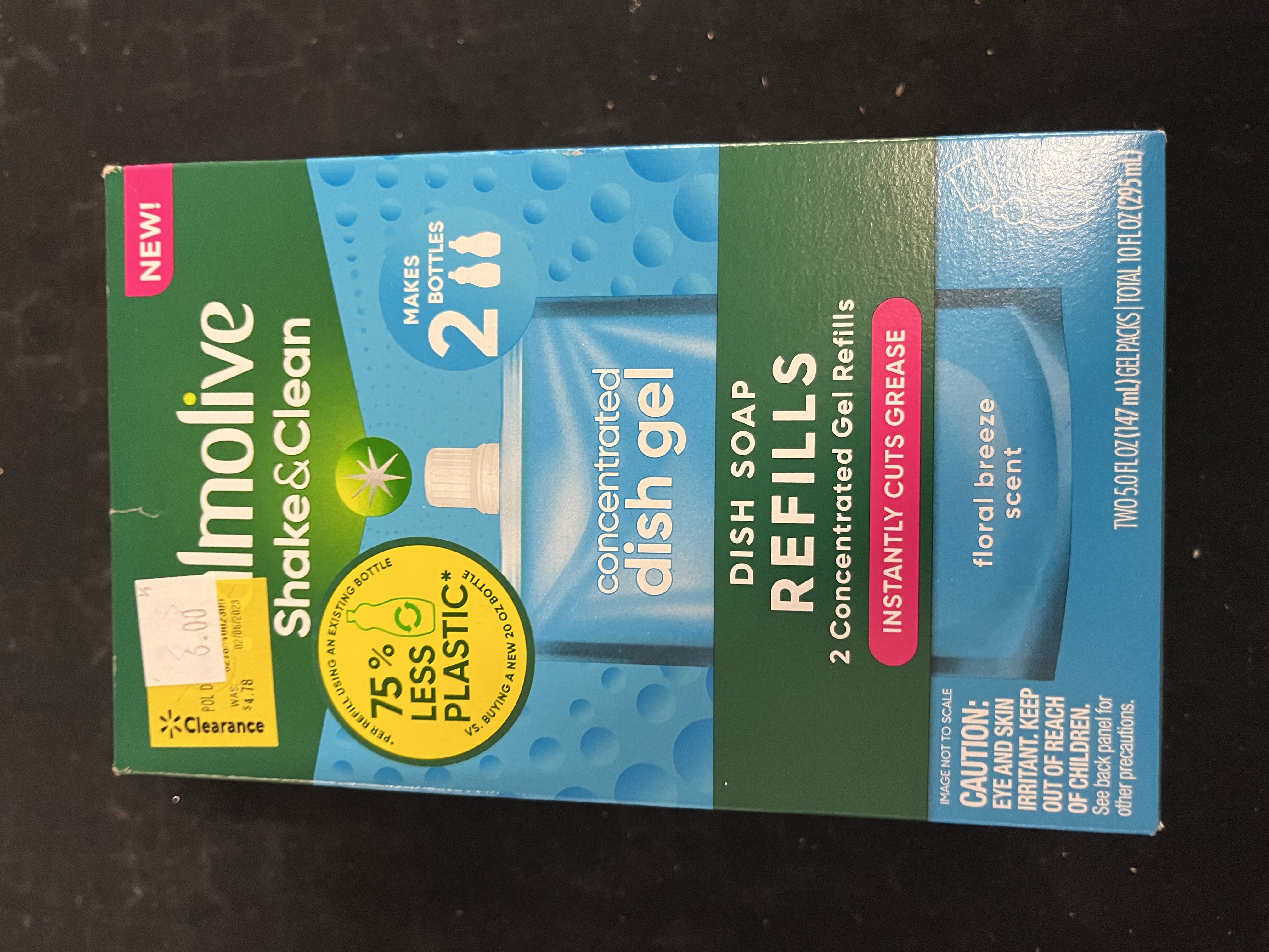 Stop throwing away your plastic dish soap bottle and start reusing it with Palmolive Shake & Clean dish soap concentrate. Packaged in a convenient small pouch, Palmolive Shake & Clean makes it easy to refill and reuse your dish soap bottle in seconds. Just fill a starter kit bottle (sold seperately) with water to the line, add the gel from the pouch, and shake it for a brand new dish soap bottle! This new, breakthrough 4x concentrated formula activates instantly when you add water to the 5 ounce gel to yield a new 20 ounce bottle of soap. This refill kit includes 2 floral dish soap refill pouches. The separately-sold starter kit includes 1 reusable dish soap bottle and 1 floral dish soap refill pouch.