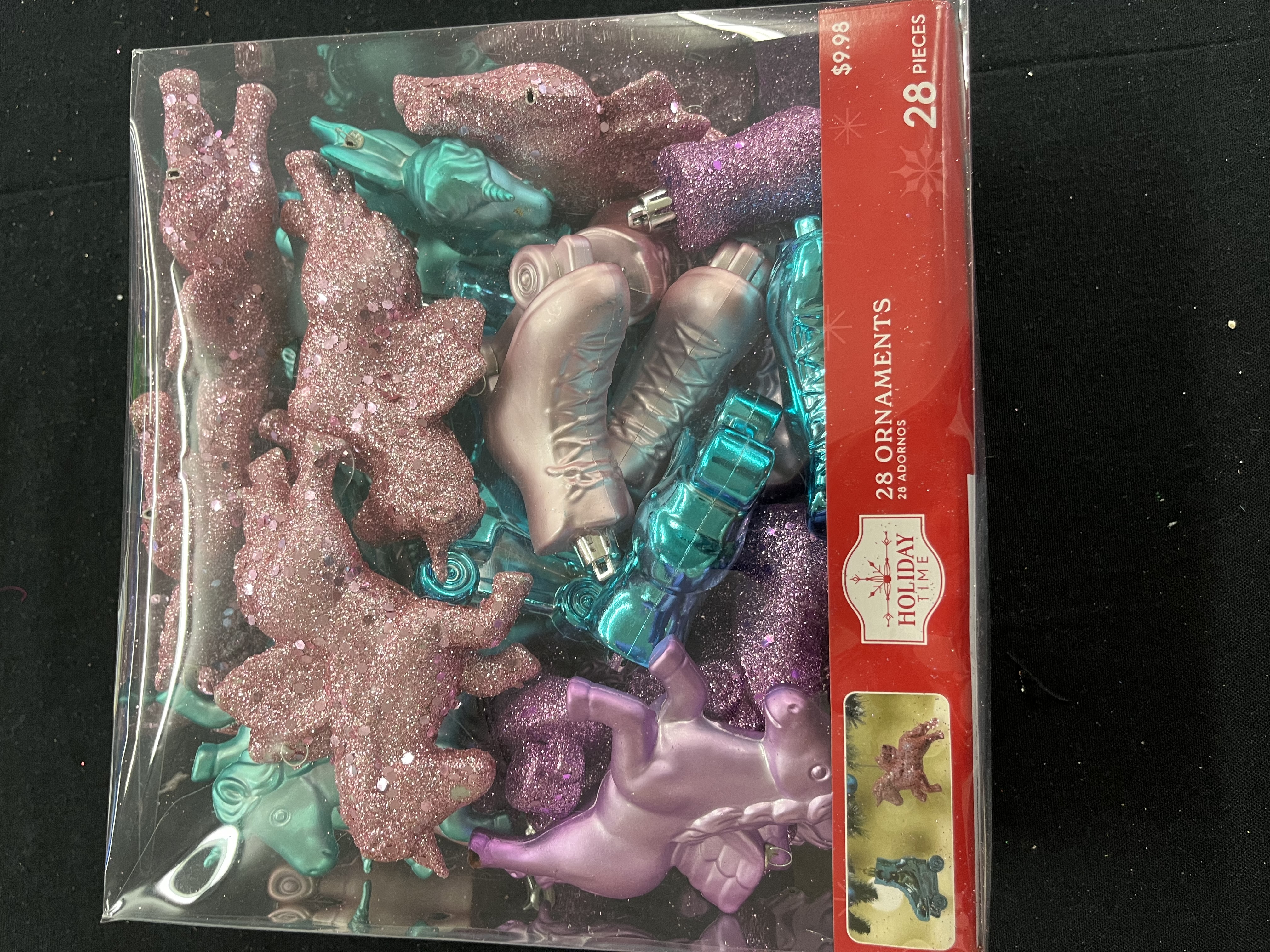 Make Your Holiday Sparkle With The Holiday Time 28 Count Pastel Blue, Light Pink, Lavender Flying Unicorn And Roller Skate Ornament. This 28 Count Ornament Set Can Help You Design Your Christmas Tree In A Electric Color Palette With Different Finishes, Colors And Shapes Of Ornaments. These Eye-Catching Ornament Feature Two Shapes Of Ornament - Flying Unicorn, Roller Skate. This Set Creates A Signature Look For Your Tree And Also Your House. Perfect For Indoor Decoration. Total 28 Pieces In One Box. Perfect For Artificial As Well As Freshly Cut Tress. These Are The Perfect Ornament Decoration To Complement Your Tree Decor, And Also A Wonderful Present For Christmas And Other Holidays.
