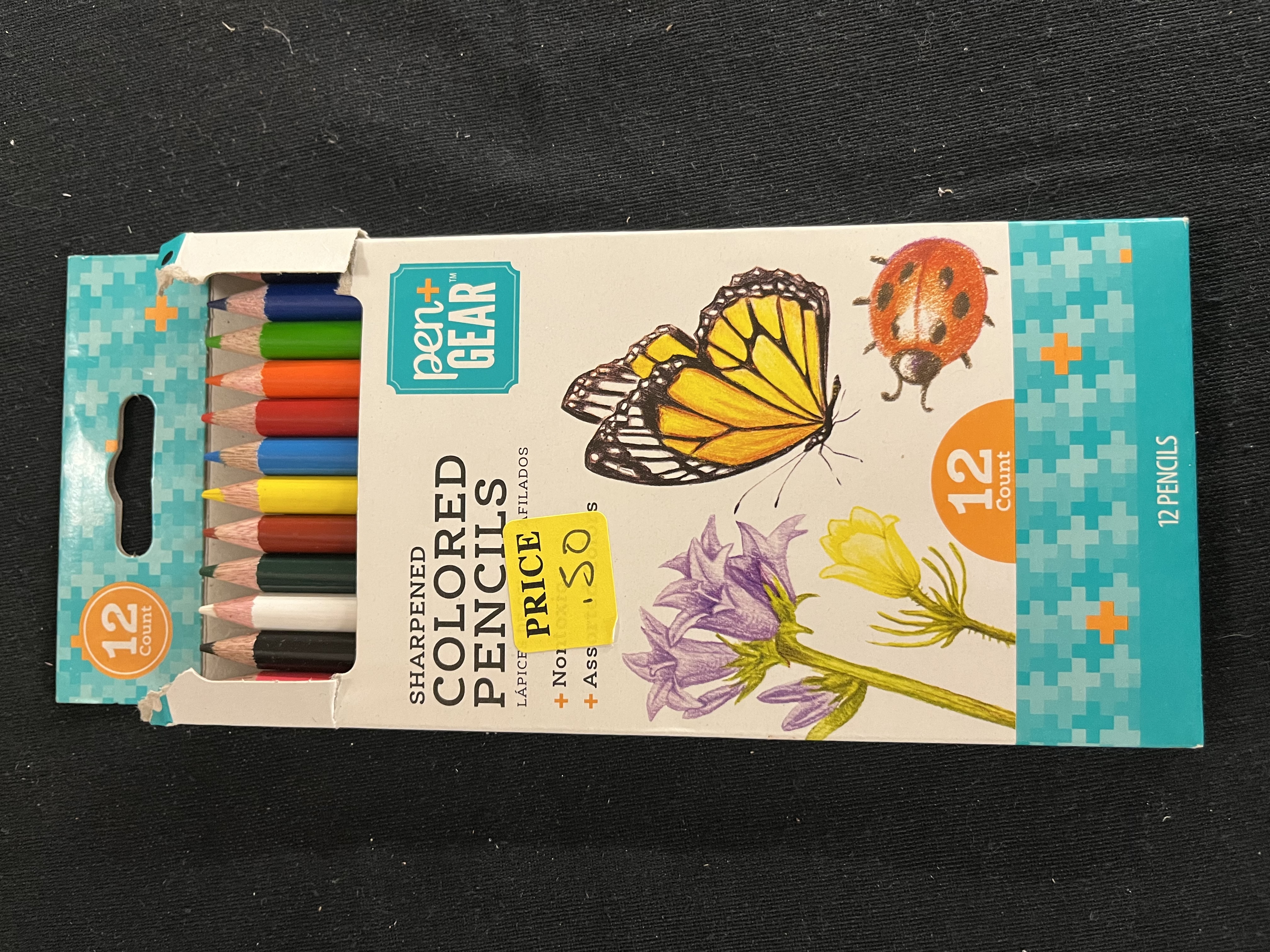 Pen+Gear Colored Pencils, Sharpened, Assorted Colors, 12 Count, For All Ages Pen+Gear Sharpened Colored Pencils, 12 Count Includes 12 different, vibrant colored pencils Use them with a coloring book, drawing pad, easel, or as a way to jazz up your school notes Perfect for groups of kids, adults, in classrooms, offices, or art studios Pair with other Pen+Gear essentials like sticky notes, ballpoint pens, and binders