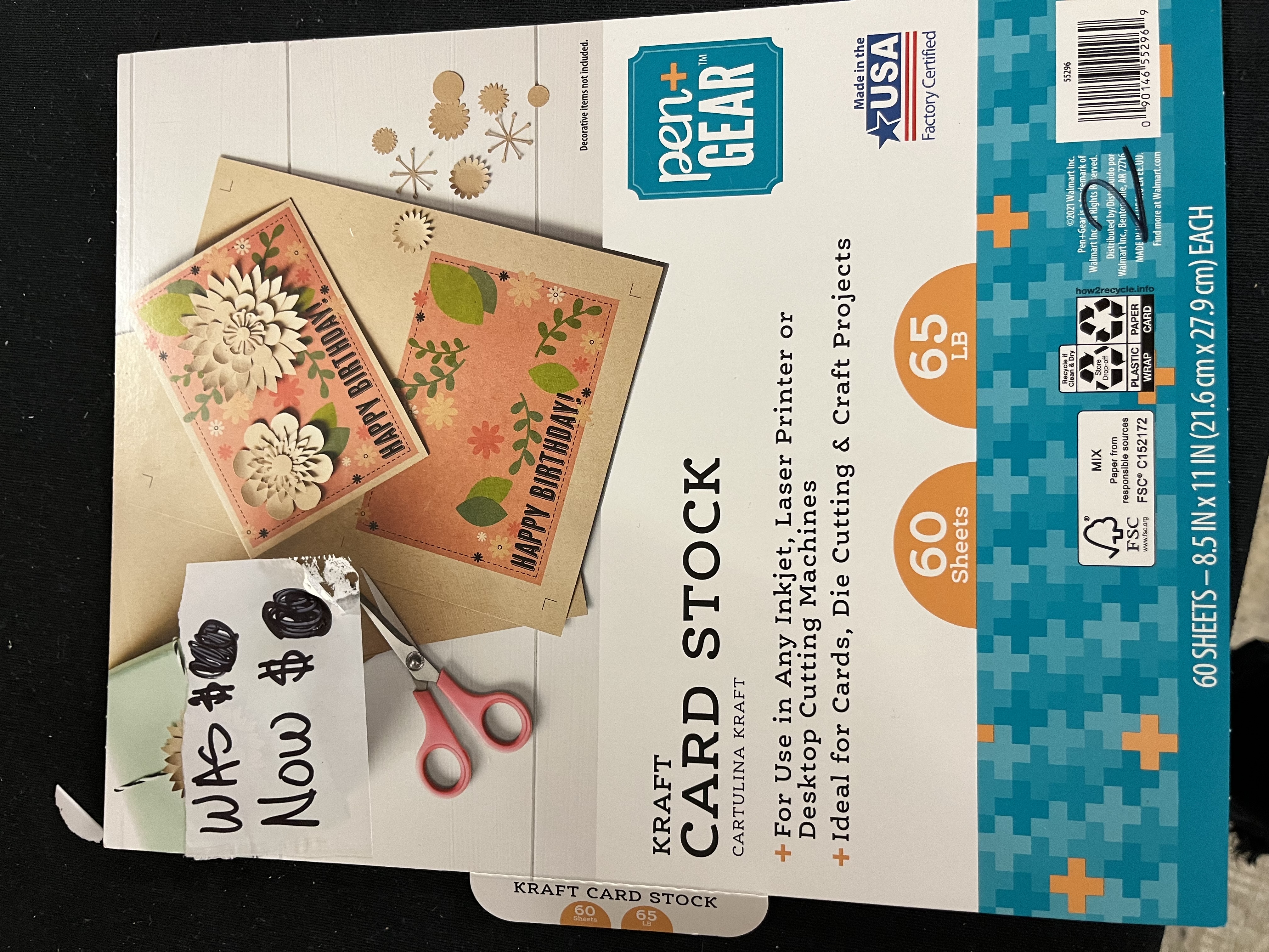 Pen+Gear Kraft Card Stock is perfect for scrapbooks, cards, gift tags, invitations, and DIY craft projects! You can combine our kraft card stock with stickers, ribbons, beads, and buttons to make your craft projects stand out! This card stock is compatible with inkjet and laser printers, copiers, and desktop cutting machines, and it is acid and lignin free, preventing the paper from discoloring over time. Pen+Gear Kraft Card Stock is Forest Stewardship Council® (FSC®) certified and is sourced from North American suppliers that are committed to sustainable forestland management.