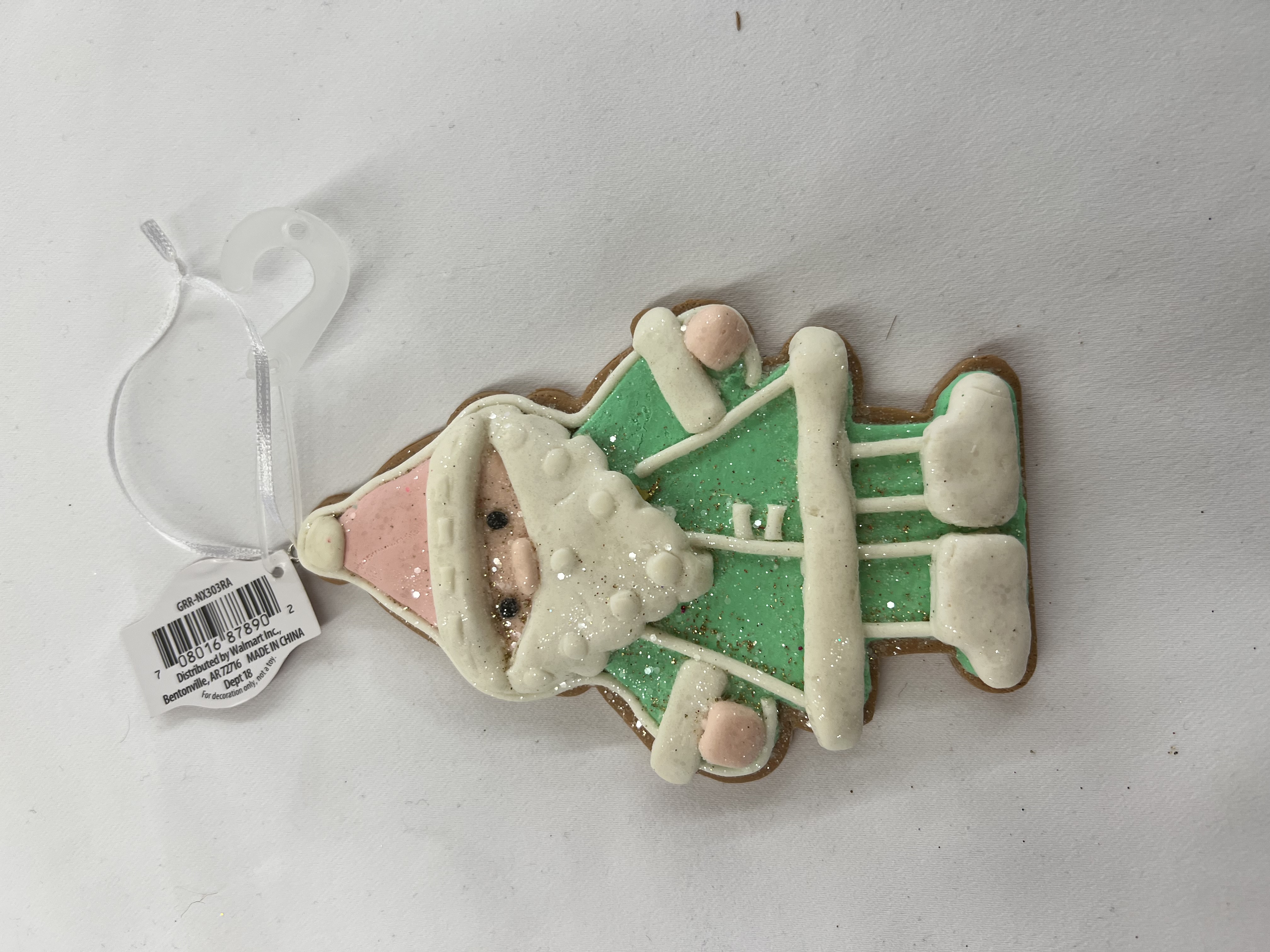 Holiday Time Pink and Green Santa Christmas Ornament, 5" Designed to look like a decorated cookie Use to decorate your tree Add to a stunning seasonal decoration Attached loop at the top makes them easy to display Colorful and whimsical ornament Check out all the joyful Christmas decorations from Holiday Time like inflatable characters, twinkling lights, colorful wreaths, and more