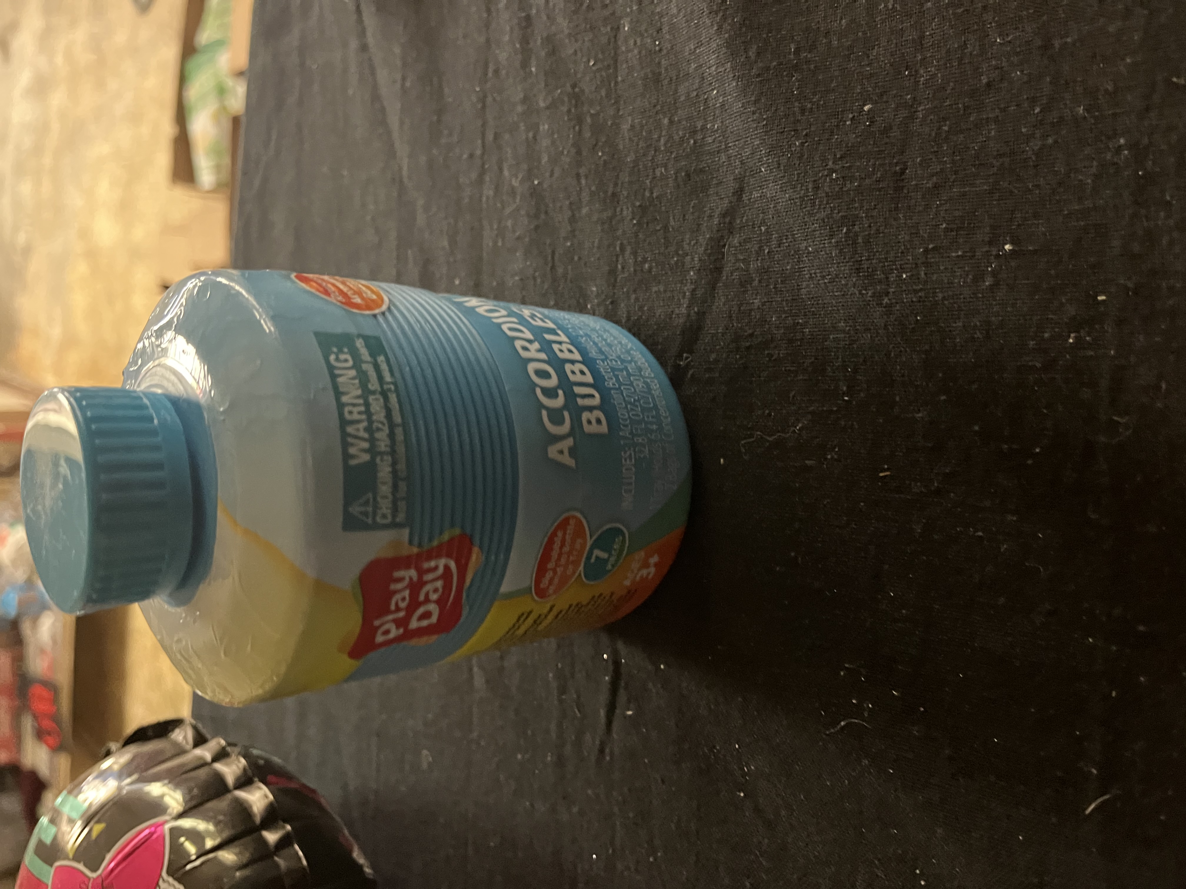 Get ready for hours of fun with the Play Day Accordion Bubbles. It's suitable for children at the age of 3 years and up. This bubble set includes reusable accordion bottle, one bubble tray, three bubble wands, and two bags of concentrated bubble solution. Here are instructions to get it set up. First, take out of the concentrated bubble solution by screwing off the tray at the bottom of the bottle. Next, expand the accordion bottle. Then, pour 1 bag of bubble concentrate into the bottle and combine the bubble concentrate with water. Finally, you need to snap the 3 wands together. Now you are all set and ready to blow bubbles. Alternatively, you can also pour bubble solution into the tray and use 1 wand to blow bubbles. Each bag of concentrate can make up to 32 ounces of bubble solution. Each of the wands can be snapped together to create an even longer one. When you’re finished, the accordion bottle can collapse back down for convenient storge. From birthday parties to everyday entertainment, these Play Day Accordion Bubbles are sure to impress.