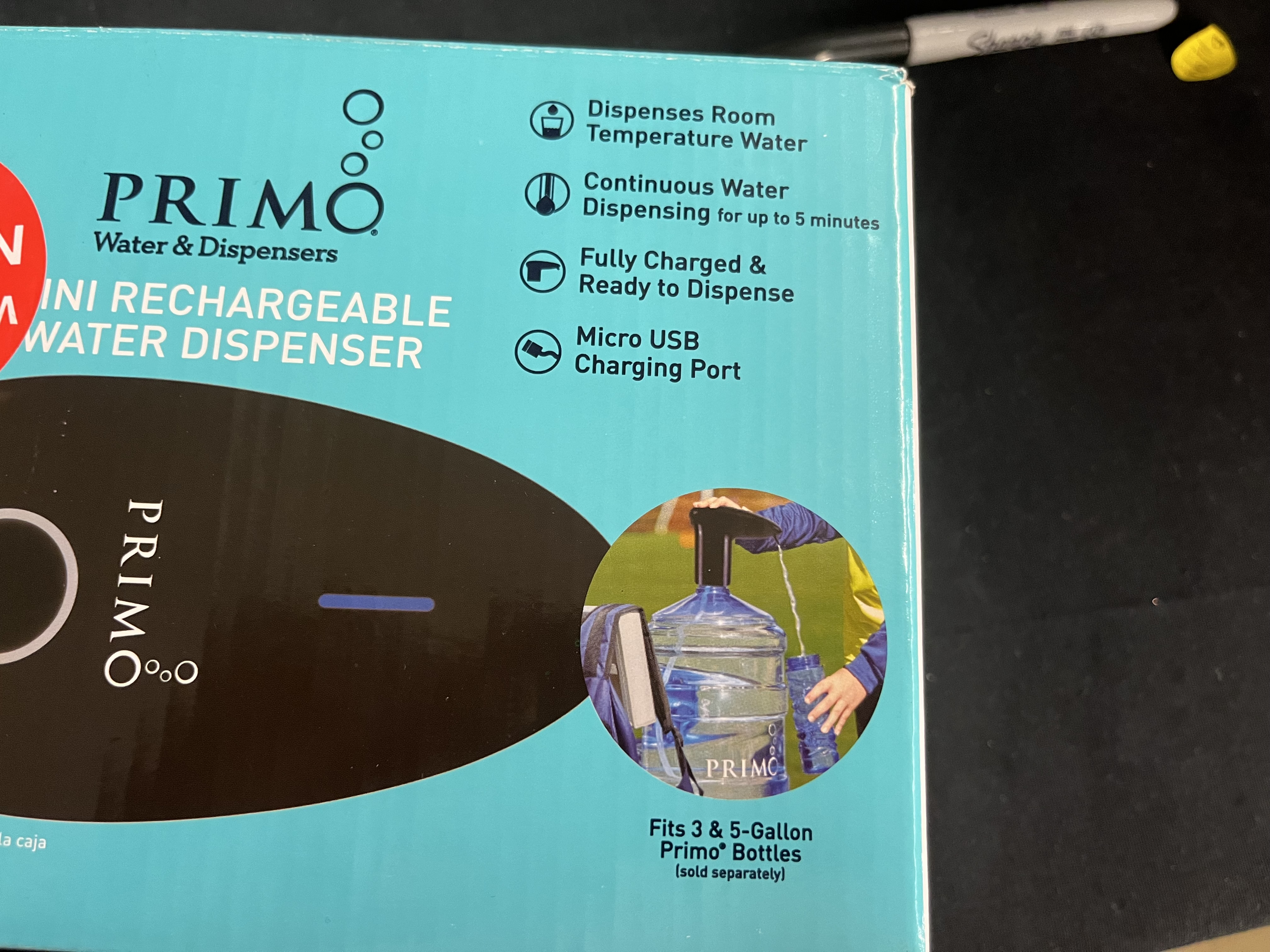 Enjoy Primo® Water at home or on the go with our Portable Electronic Water Pump in black, featuring convenient touch controls and a stainless steel spout. Its compact size allows this water pump to be conveniently stored under or inside cabinets for everyday use, or brought along to picnics, sports outings and tailgating events for on-demand hydration. The Primo® Water Portable Electronic Water Pump also features a long-lasting lithium ion battery that dispenses up to 25 gallons with every charge. To use, simply fasten the water pump to any compatible 3 or 5 gallon water jug and go. This pump is small in size, measuring 8.6 inches high, 4.5 inches wide and 5.7 inches deep,. Visit Walmart's convenient Primo® Water to refill and exchange stations for a quick, affordable and environmentally friendly drinking water solution. Our water is subjected to the highest standards of quality. Primo® Water is purified with a multi-step reverse osmosis process to ensure pure, refreshing drinking water, free of contaminants. Primo® Water bottles are also thoroughly inspected and sanitized after each recycling. Features Rechargeable Brand Primo® Water. Model Number 601354