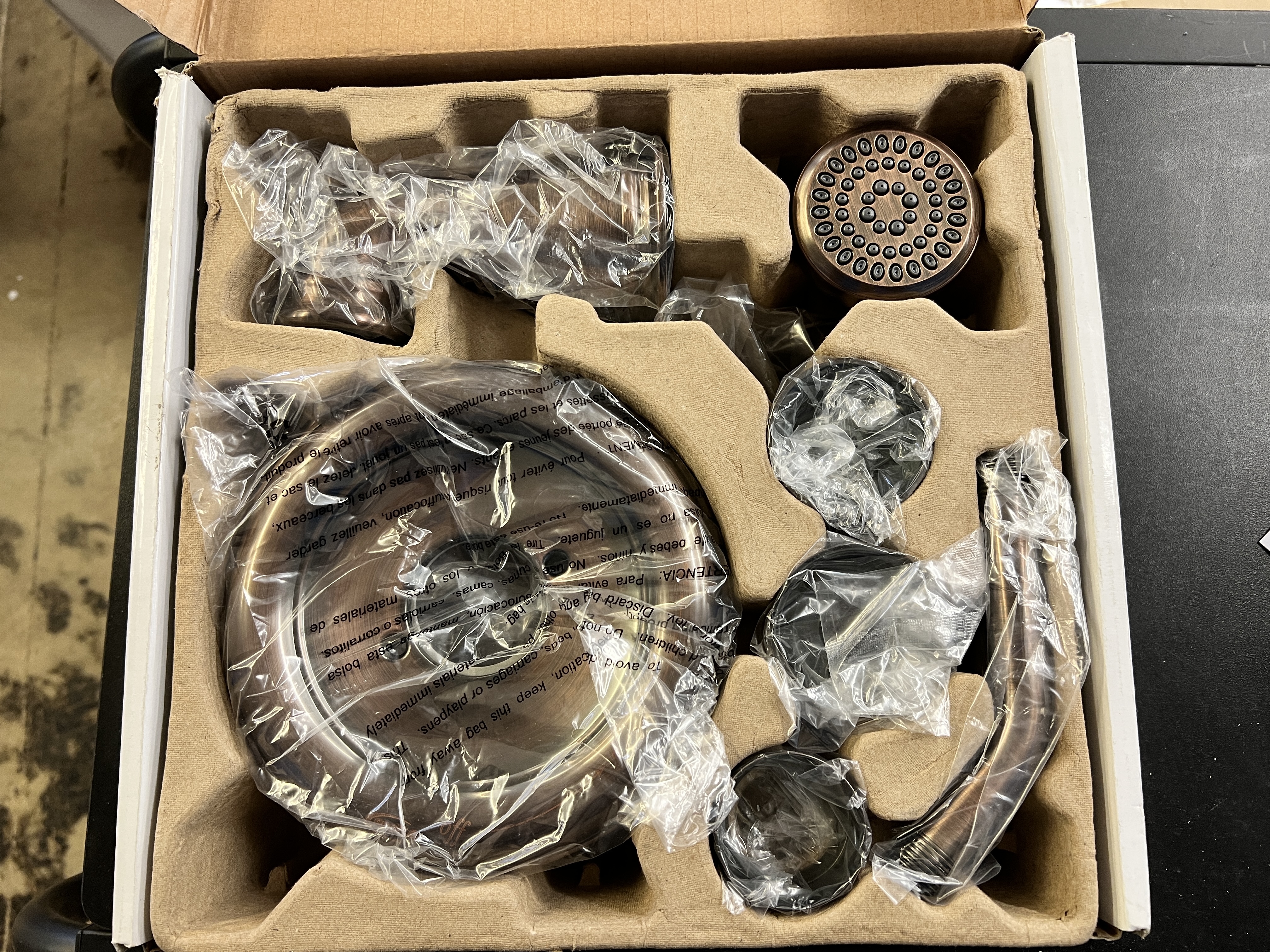 Tub and Shower Package Includes: Valve trim, shower head, diverting tub spout, shower arm and flange