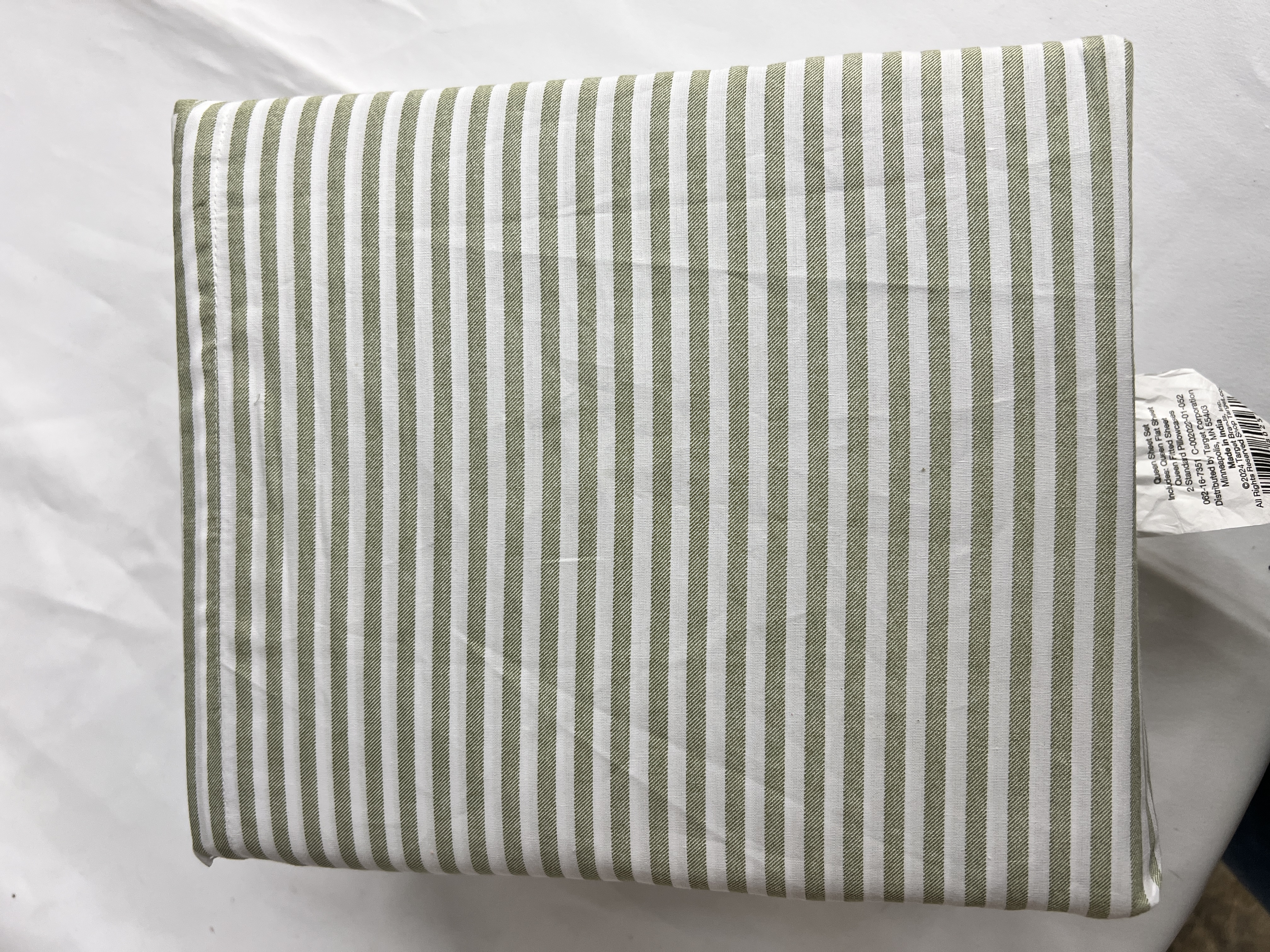 Queen 250 Thread Count Organic Percale Sheet Set Sage Green Stripe - Threshold™: GOTS & OEKO-TEX Certified, Includes 4pc