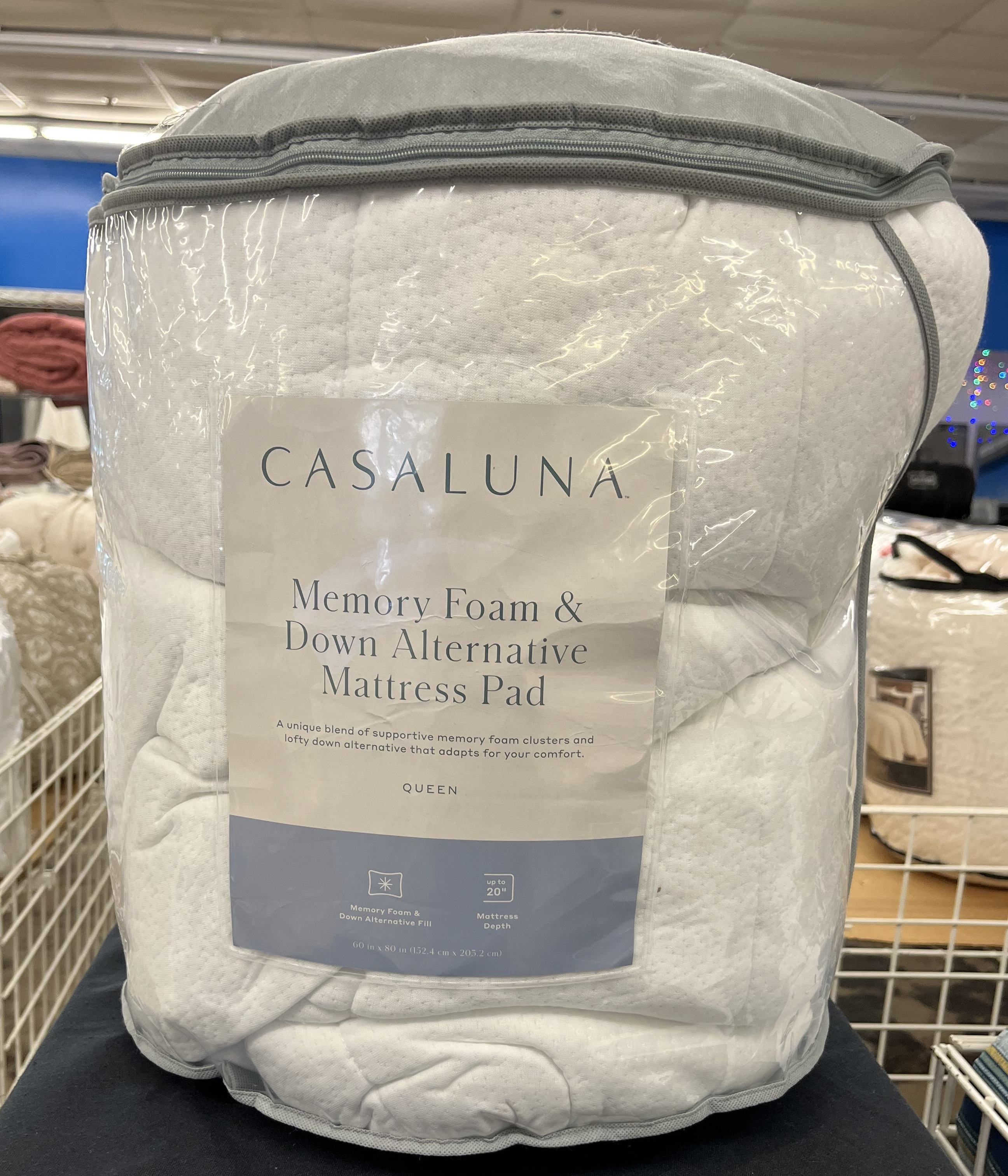 Help safeguard your mattress with the Memory Foam & Down Alternative Mattress Pad from Casaluna™. Suitable for mattresses up to 20 inches deep, this jacquard mattress pad with a touch of spandex is decorated with a box-quilted pattern, and it boasts a 50% memory foam/50% polyester filling that contours to your body to provide cushioned comfort. Plus, its machine-washable design makes cleaning a breeze.