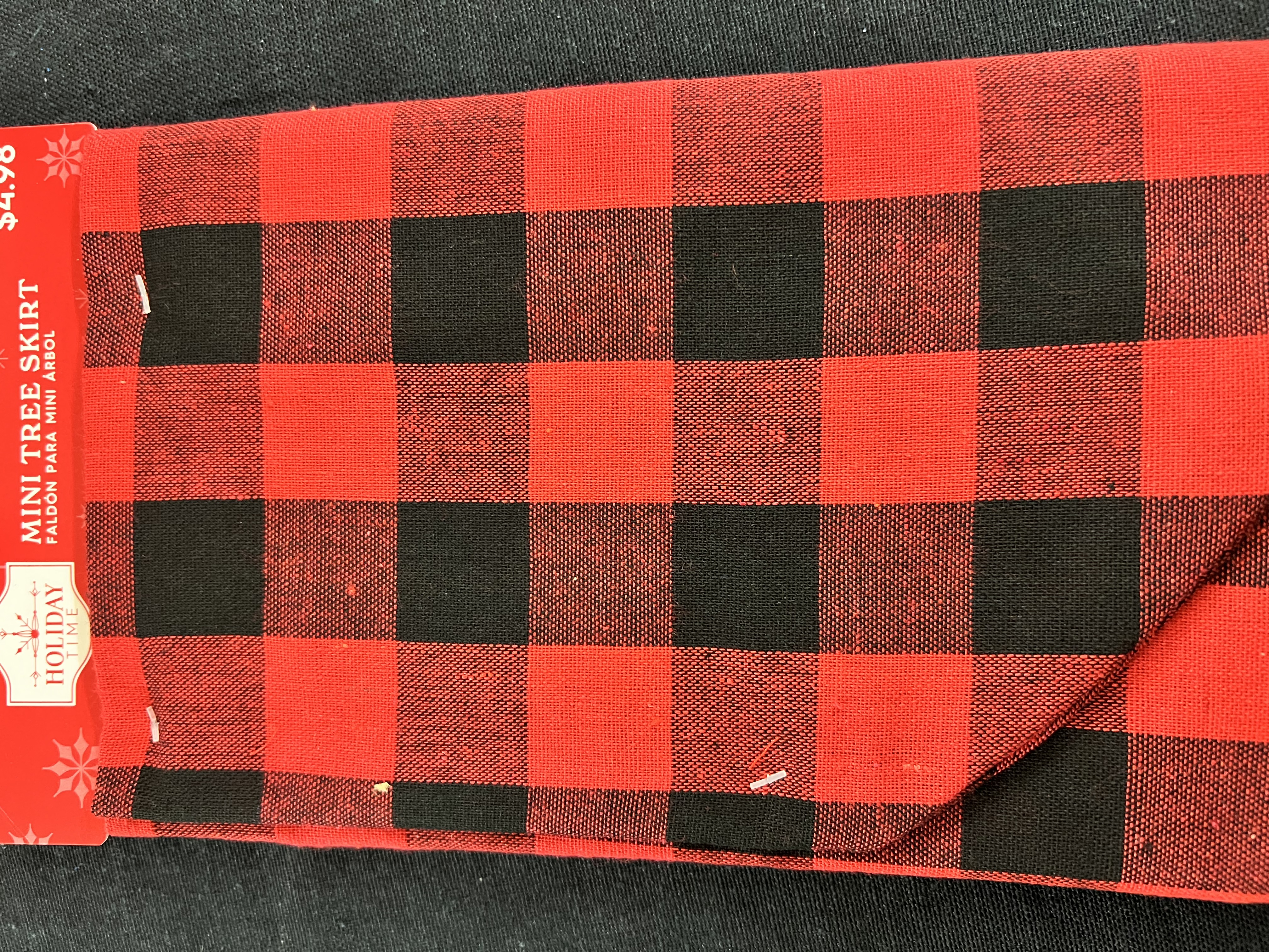 Limited-time tree skirt Featuring red and black buffalo plaid Perfect size for mini artificial or fresh-cut trees Lovely addition holiday decorations Decorative use only; not a toy Seasonal and festive Pair with other Holiday Time accessories and decorations like ornaments, wreaths, twinkle lights, gift wrap, and more (sold separately