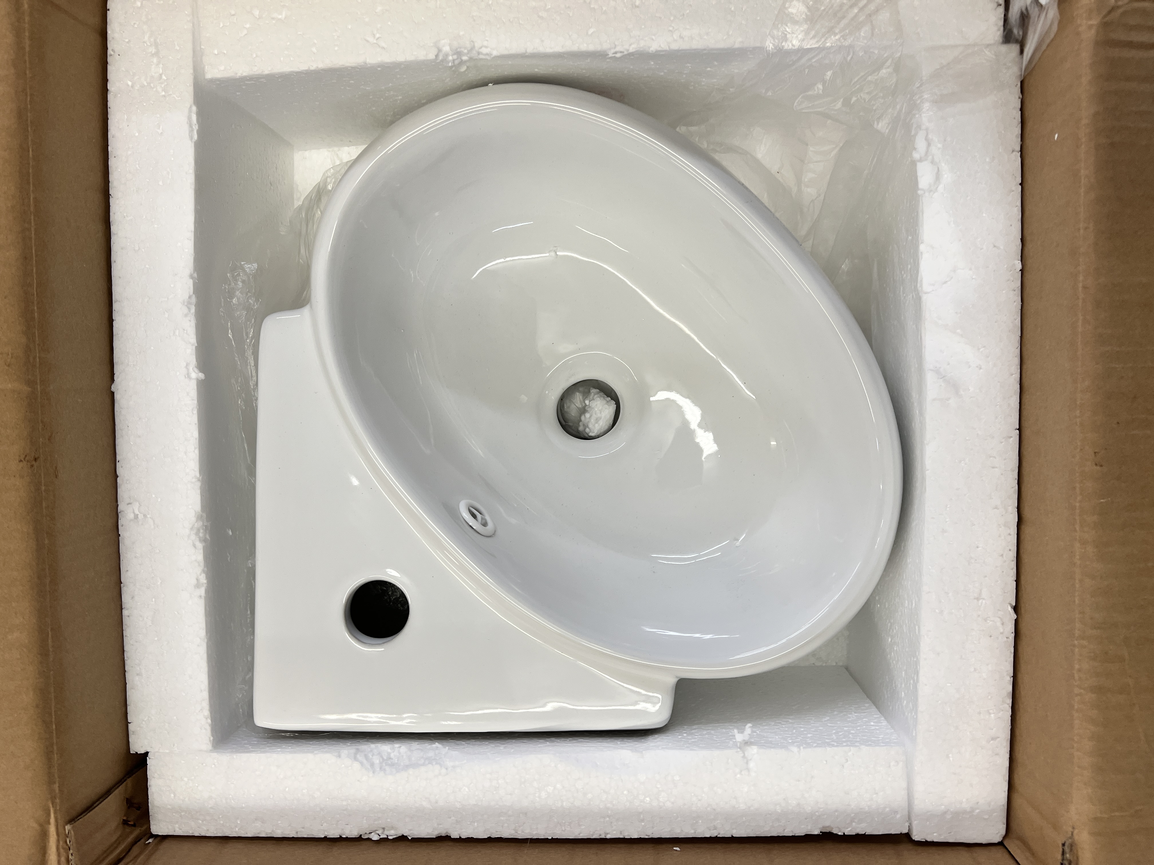 Renovators Supply Manufacturing Corner Wall Mount Bathroom Sink 15 3/4 In. White Ceramic Oval Countertop Vessel Sink With Overflow And Single Faucet Hole (Min Bid Amount: $2)