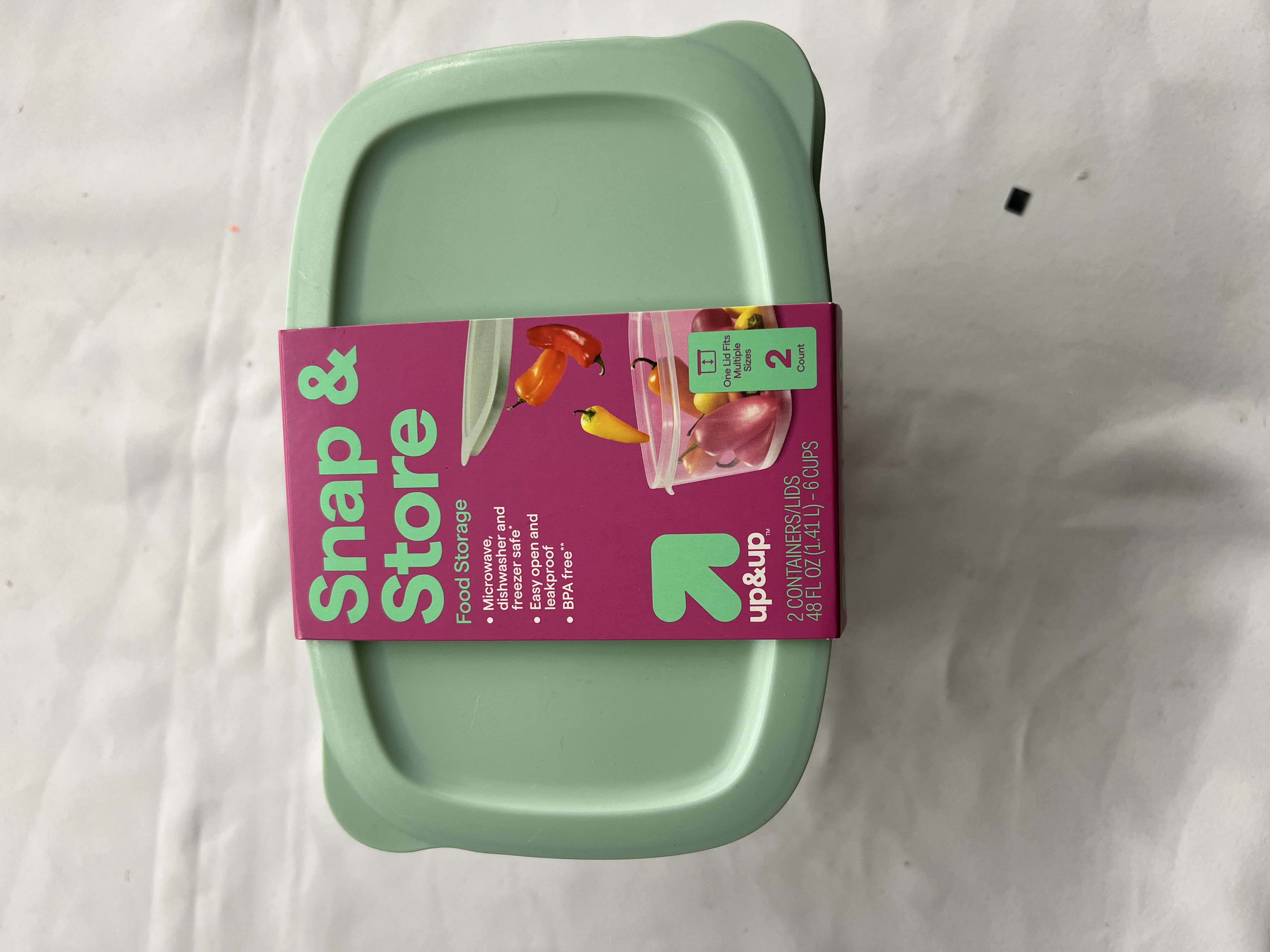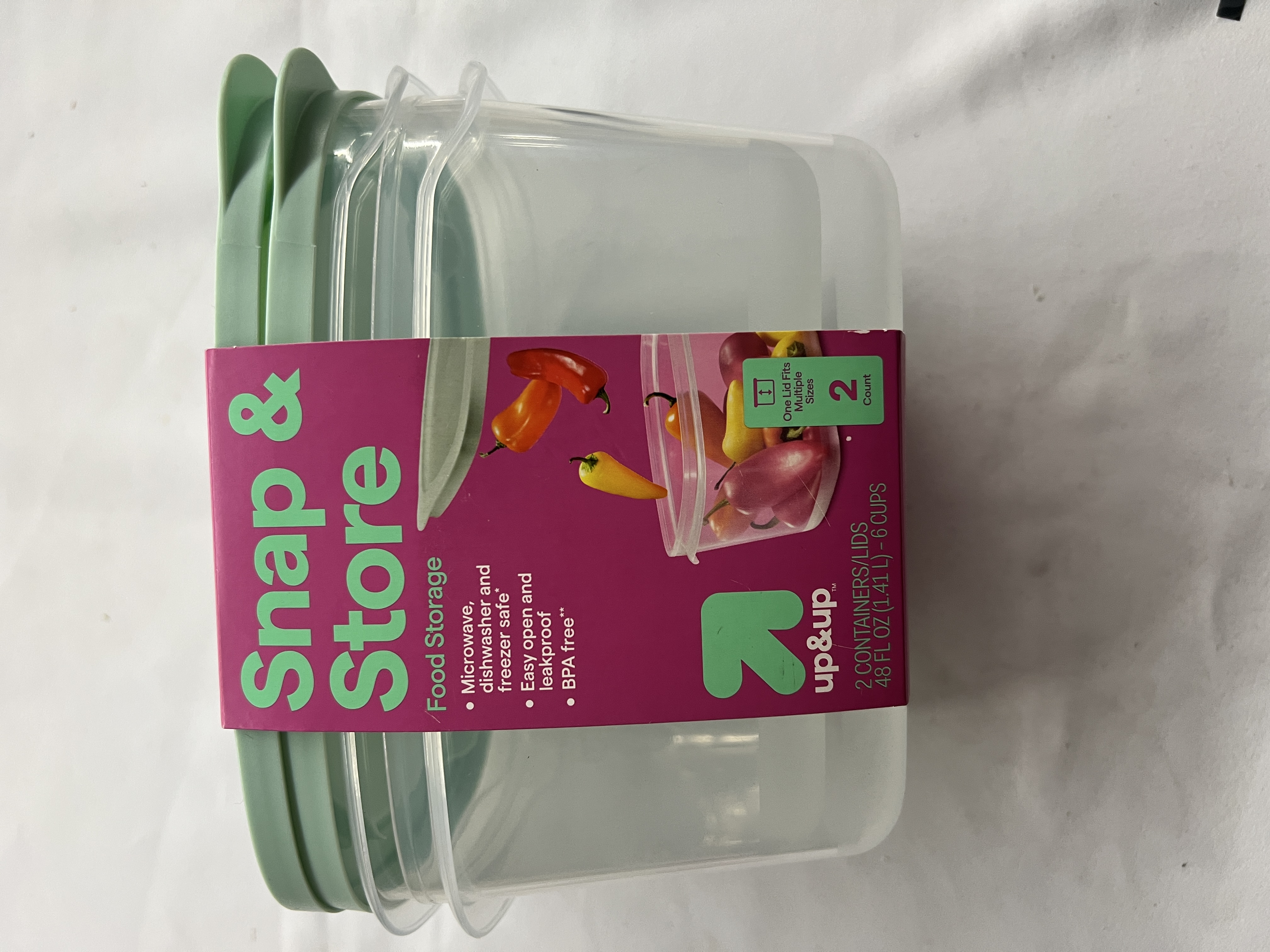 Store meats, veggies, fruit and more in the fridge with the 2-Count Large Rectangle Food Storage Containers from up&up™. Made from BPA-free plastic in a rectangle shape, this set of handy food storage containers feature a mint green snap-on lid with a leakproof design, and a transparent body for easy identification of stored contents. These multipurpose food containers are perfect for storing a variety of food items. Plus, they're microwave, dishwasher and freezer safe for versatile use.