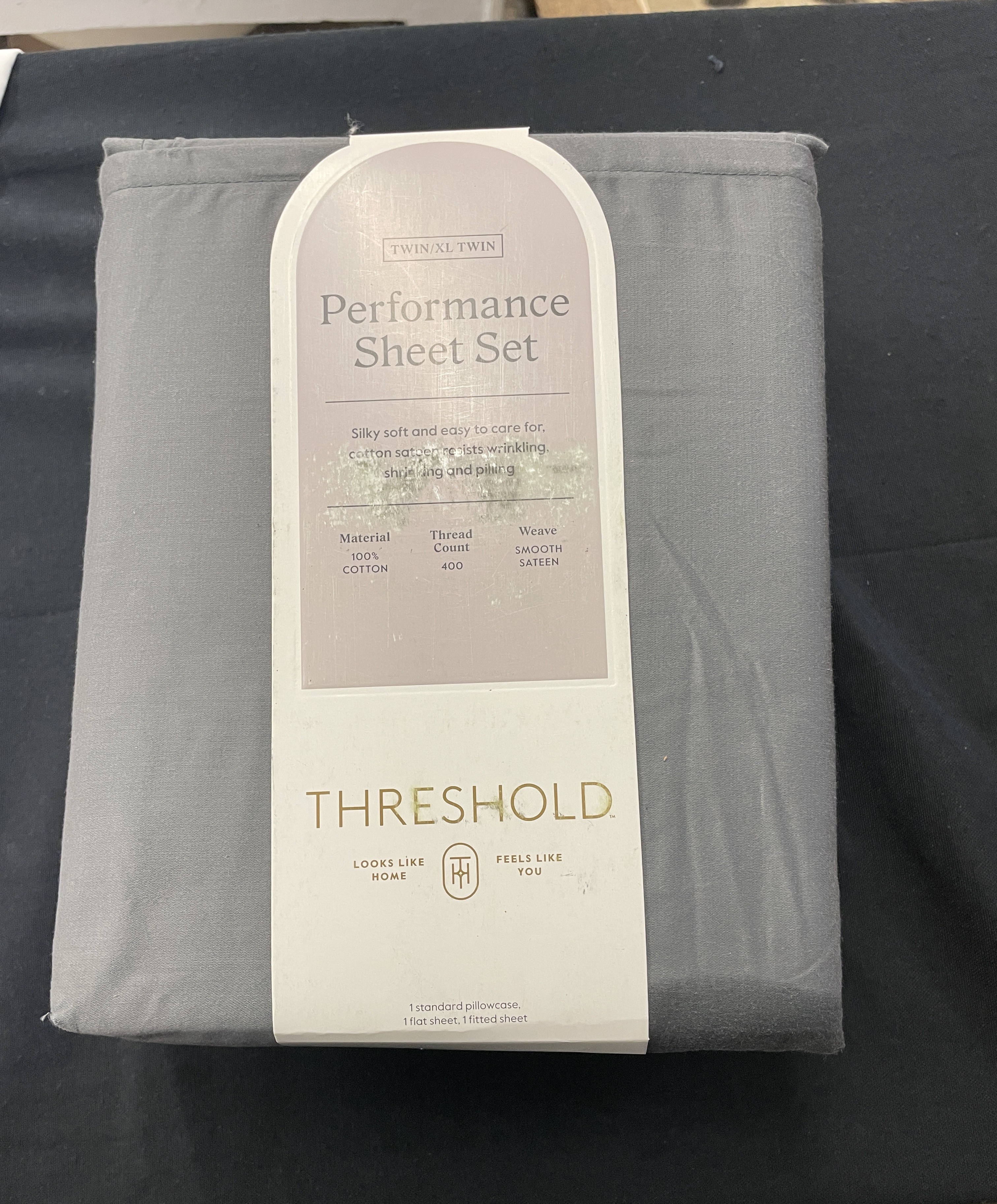 Give your bed a new look and feel with a 400-Thread Count Solid Performance Sheet Set from Threshold™. Cut from 100% cotton fabric with a thread count of 400 and a sateen finish, this bedding set creates a perfectly luxurious sleeping space, and the solid-color design mixes well with a wide variety of styles for easy integration into your bedding ensemble. Wrinkle-, pill- and shrink-resistant construction keeps these sheets looking their best, while top and bottom labels make placement a breeze. Simply pair with your choice of comforter or quilt and a bank of pillows for a bedding upgrade that will have you counting the minutes until bedtime.