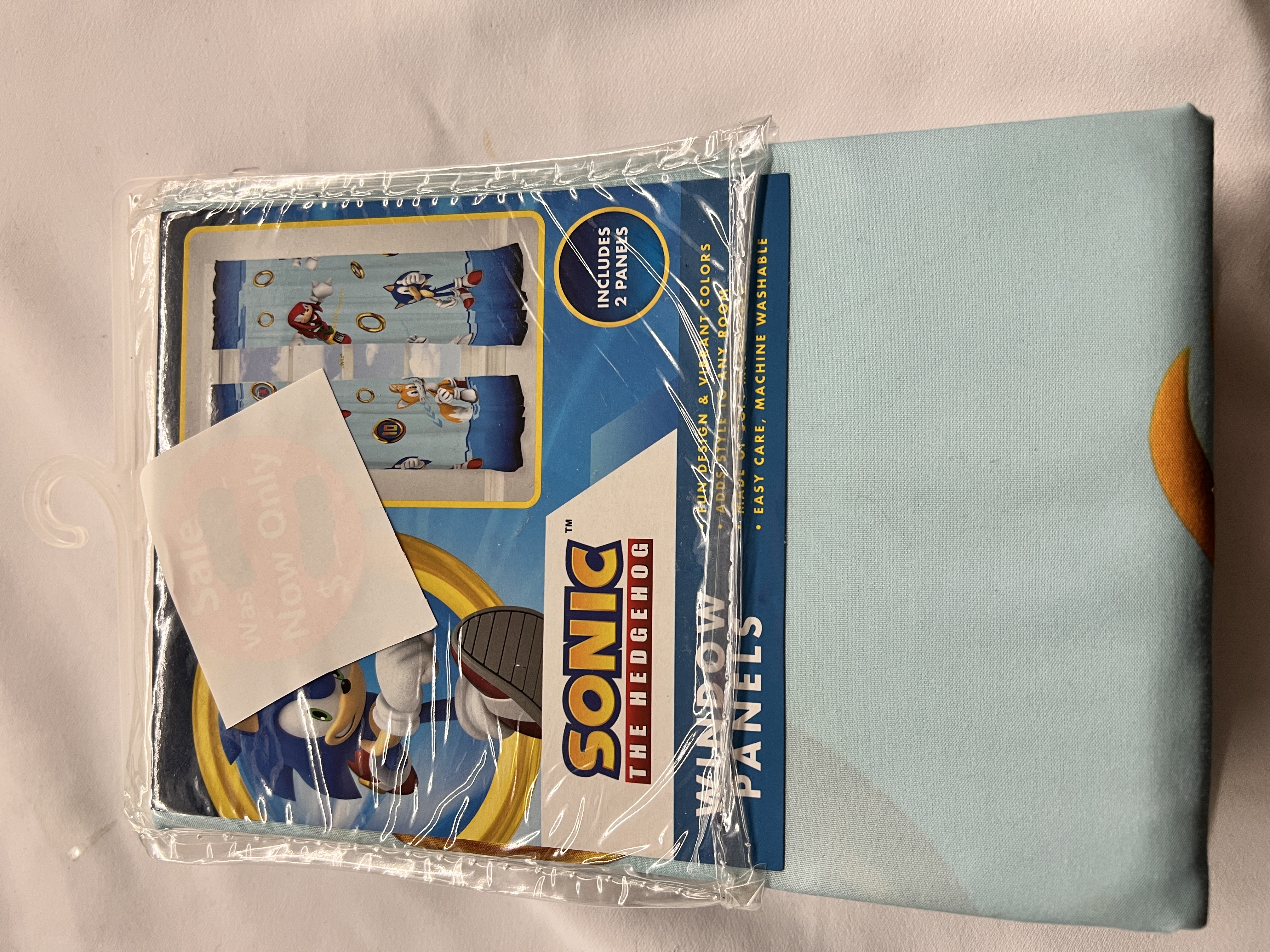 Give your child’s bedroom a supersonic makeover with these cool Sonic the Hedgehog curtains. The window curtains design features fun and bold character imagery of your child’s favorite speedy hero Sonic, and his sidekicks Tails and Knuckles, on a blue background. The curtains are made from soft and durable microfiber material, designed to filter sunlight without blocking it completely, for privacy in a playful look. These curtains are 63 inches long and made to fit 36"- 48" windows, have a rod pocket top, and include two curtain panels that are ready to install right away. Functional and fun, these decorative kids’ drapes will add some excitement to their playroom or bedroom. They’ll love being surrounded by their favorite Sonic the Hedgehog characters every day.