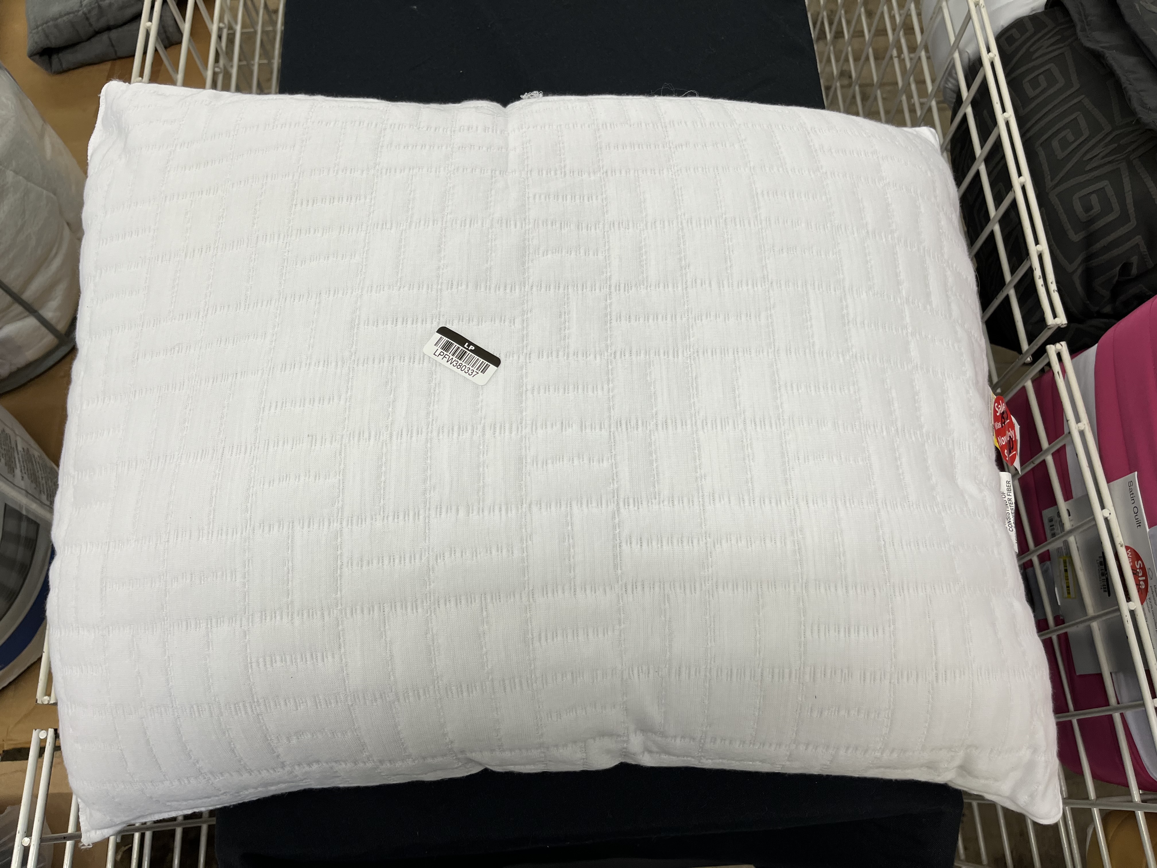 Upgrade your sleeping space with these Standard/Queen 2-Pack Plush-Knit Bed Pillows from Room Essentials™. This pack includes a pair of white bed pillows. Both pillows boast a plush-knit basket construction and a comfy padded interior, and they're suitable for all sleep styles.