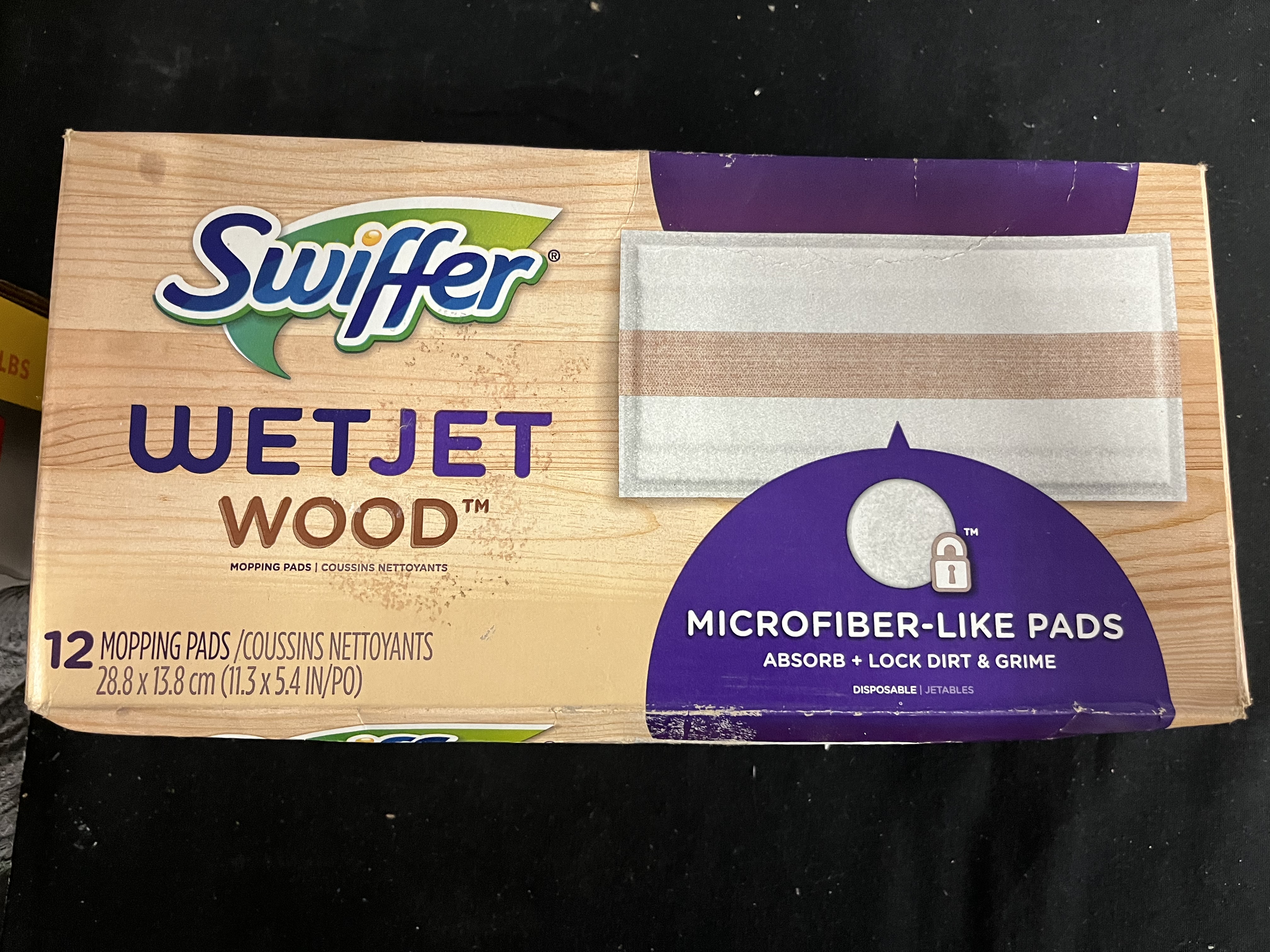 Swiffer WetJet Wood Cleaning Pad refills were specifically engineered with hardwood floors in mind. The soft texture of the microfiber like cleaning pads are gentle on hardwood floors. The Absorb + Lock strip funnels liquid into the pads center and locks away dirt and grime for good. Safe on wood *do not use on unfinished, oiled or waxed wooden boards, non sealed tiles or carpeted floors because they may be water sensitive. For best results use with Swiffer WetJet Wood device and Swiffer WetJet Wood Quick dry Solution. When you are done, just throw that pad, and all its dirt, away. 12 Mopping Pads Fresh Scent