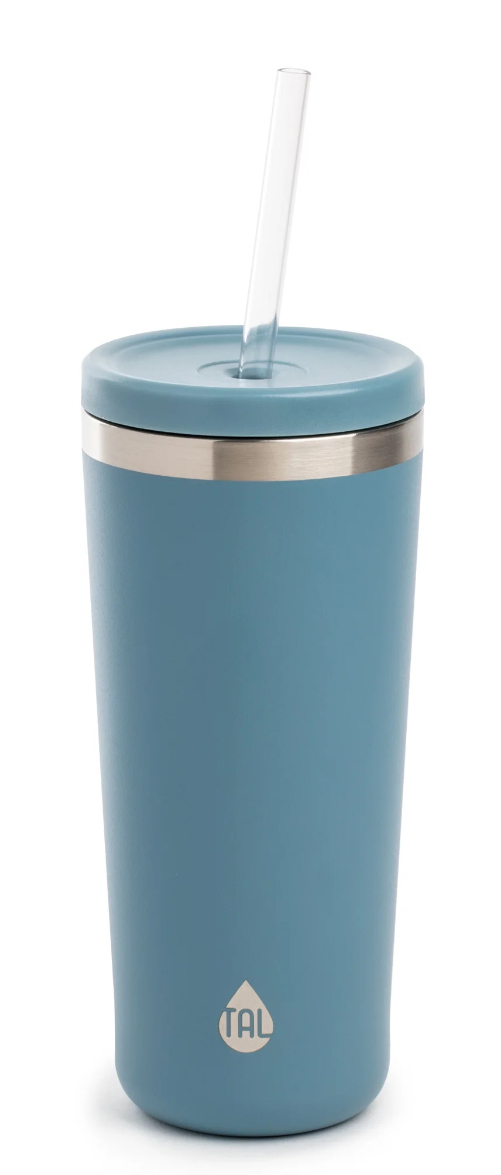 TAL Stainless Steel Ranger Tumbler 24 fl oz, Blue Slate is perfect for anyone who loves to stay hydrated on the go, whether you're hitting the gym, heading out on a hike, or simply need to stay refreshed throughout the day. Crafted from premium quality stainless steel, this water bottle is built to last. It's not only durable and long-lasting, but also rust-resistant and easy to clean, making it the perfect choice for anyone who wants a reliable and sturdy water bottle. The wide mouth design makes it easy to fill and clean, and the included straw makes drinking on-the-go a breeze. This eco-friendly and cost-effective water bottle is a healthy and safe option for drinking beverages, as it's made from BPA-free materials that don't contain any harmful chemicals or toxins. For care and use, please hand wash in warm water with a soft sponge and dish soap.