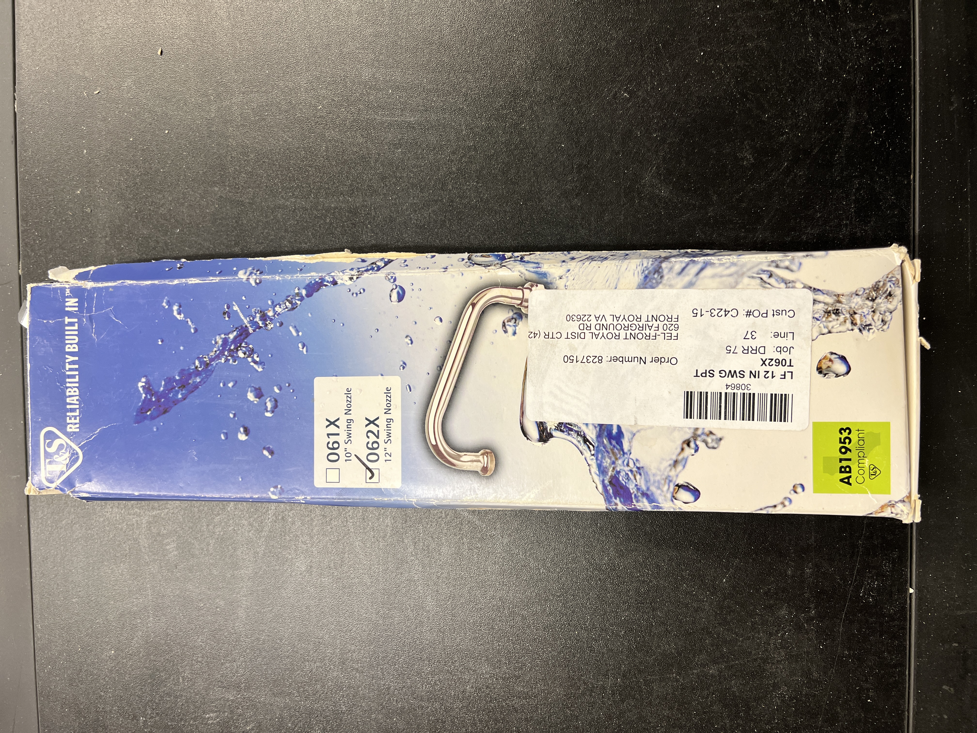 12" swing nozzle B-PT stream regulator outlet, Series 1 Fits all T&S swivel outlet faucets Material: Chrome plated brass tubular spout