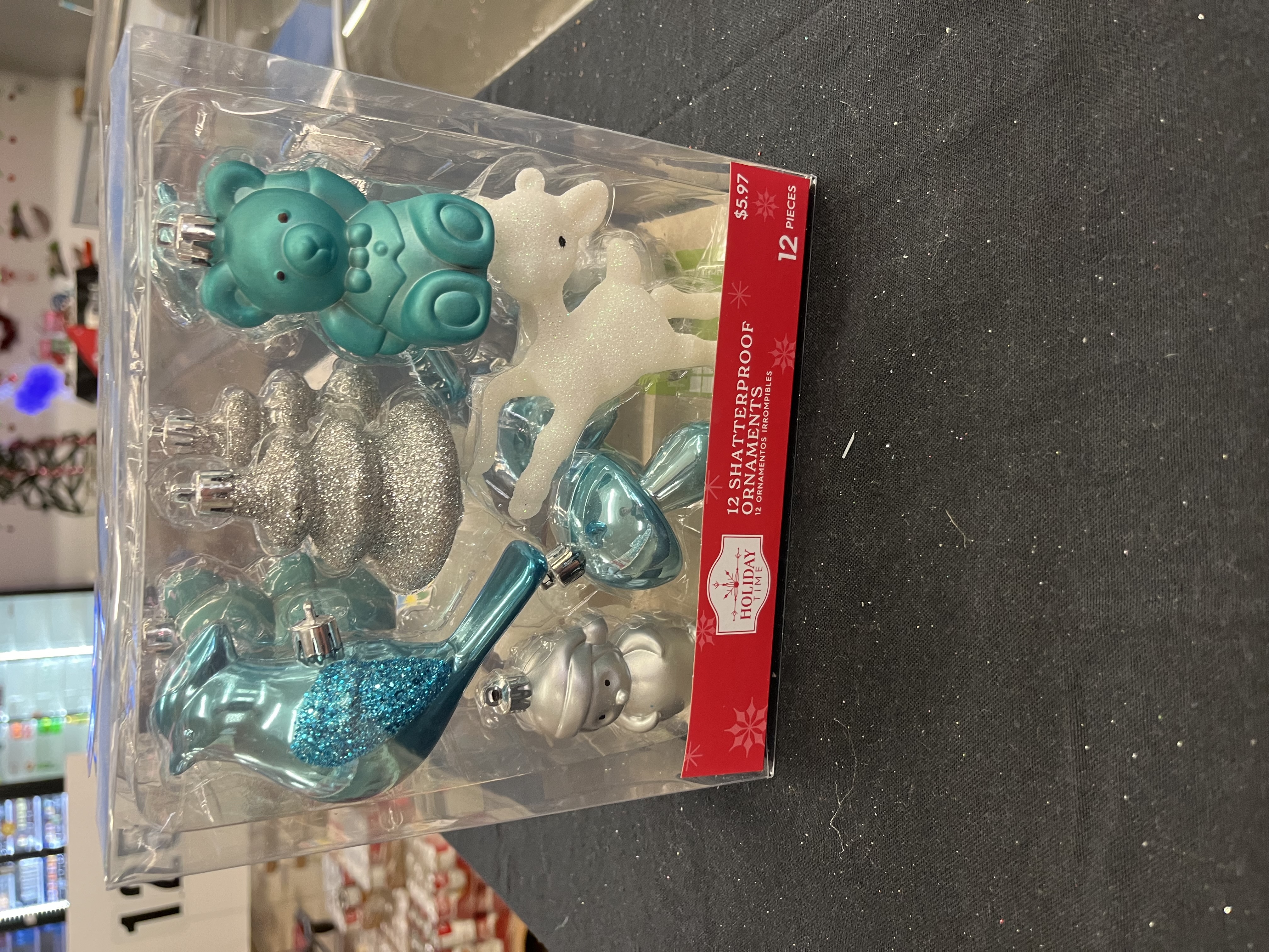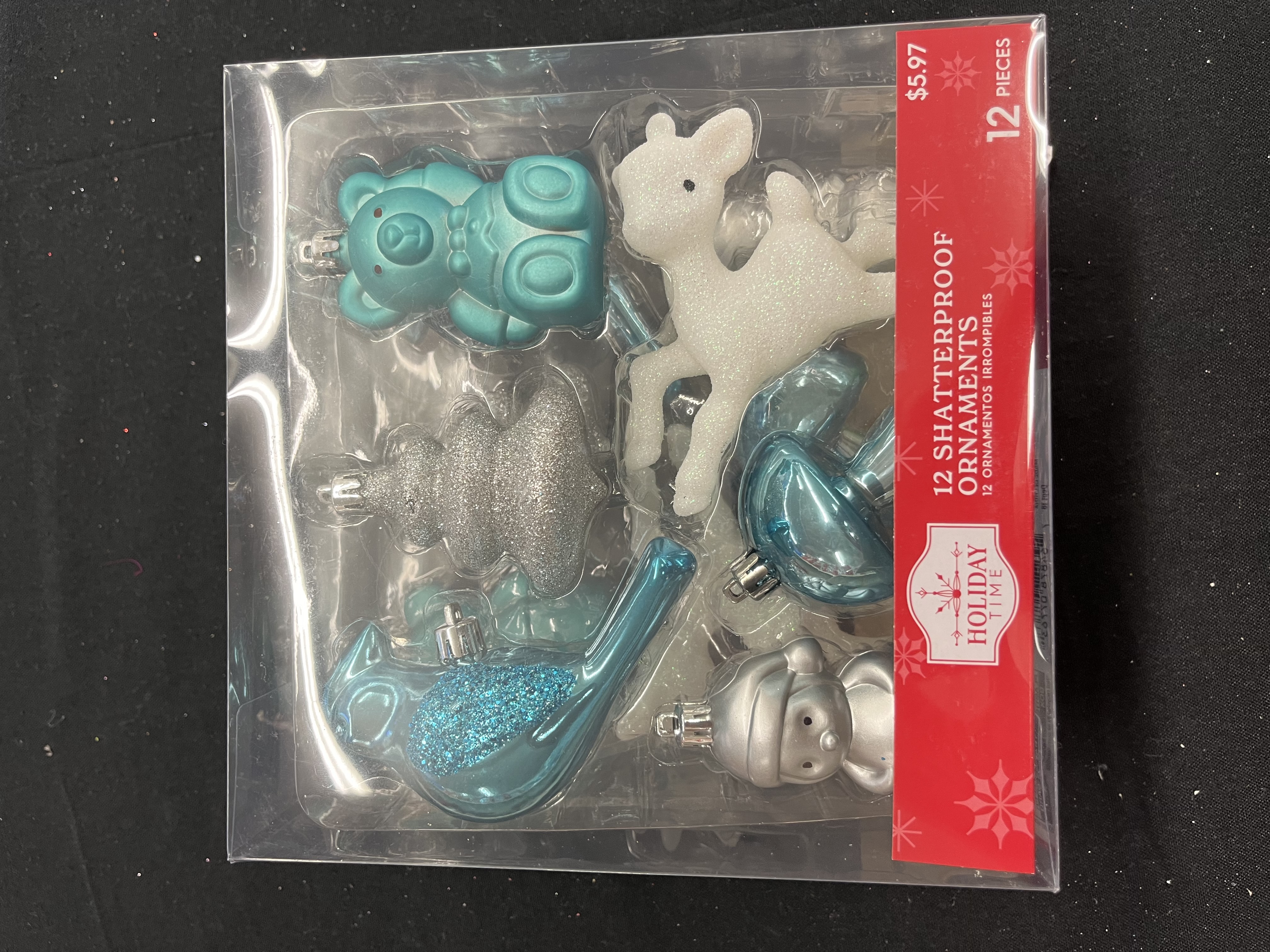 Add a decorative flair to your Christmas tree with the Holiday Time Turquoise, Silver, and White Winter Icon Shatterproof Christmas Ornaments. This set of ornaments will add sparkle and color to your Christmas tree in festive shades of the season. These icon-shaped Christmas ornaments come in turquoise, silver, and white with different finishes. Each set contains a mix of fun seasonal icons like deer, trees, teddy bears, birds, and more with a gold top. The ornaments are shatterproof to help make decorating safe and fun for the whole family and include a loop for easy hanging. Be sure to check out all the joyful Christmas decorations from Holiday Time like inflatable characters, twinkling lights, colorful wreaths, and more. Go all out this season when you decorate with the Holiday Time Turquoise, Silver, and White Winter Icon Shatterproof Christmas Ornaments.