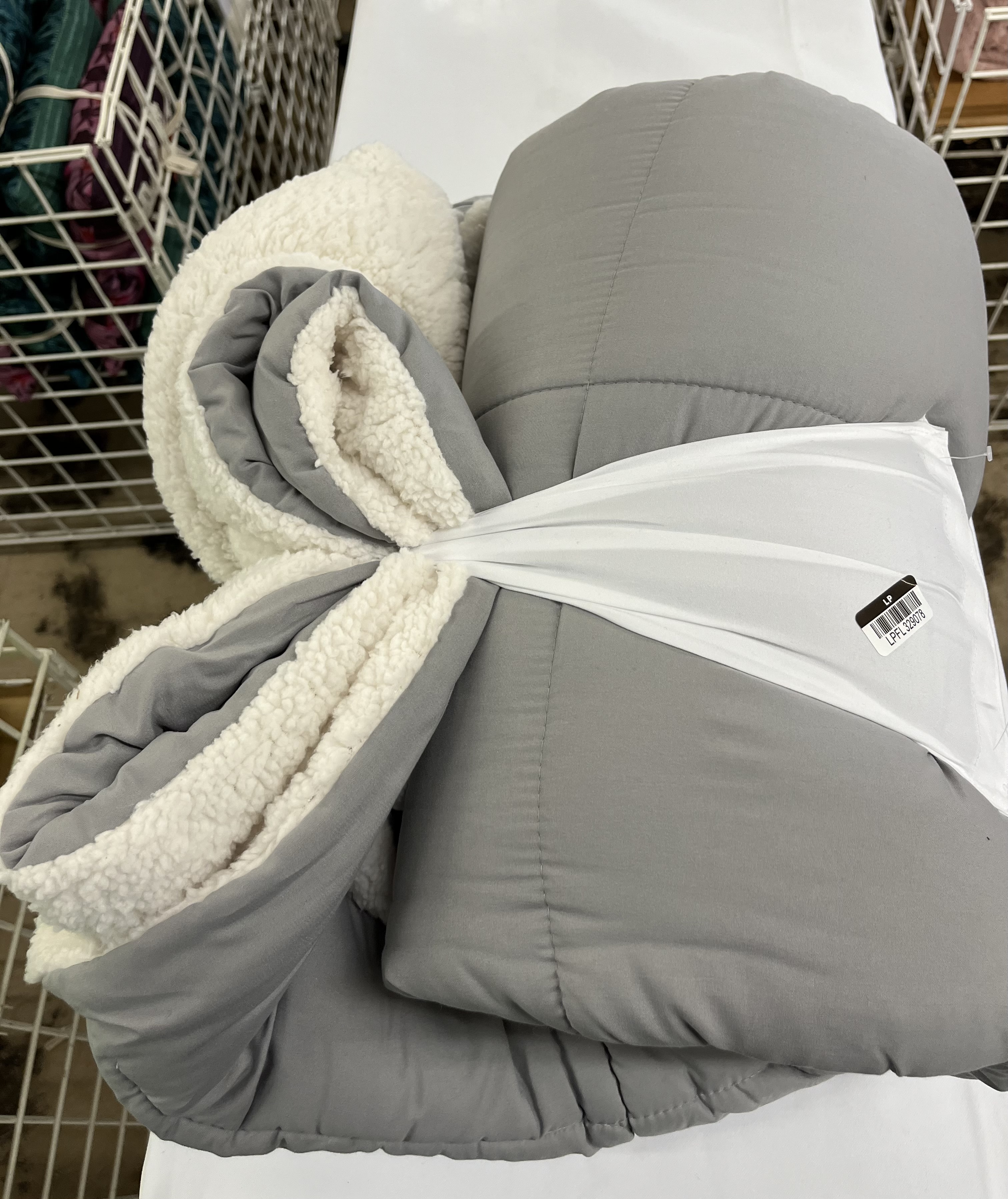 Twin/ Twin Extra Long Faux Shearling Washed Microfiber Reversible Comforter Gray