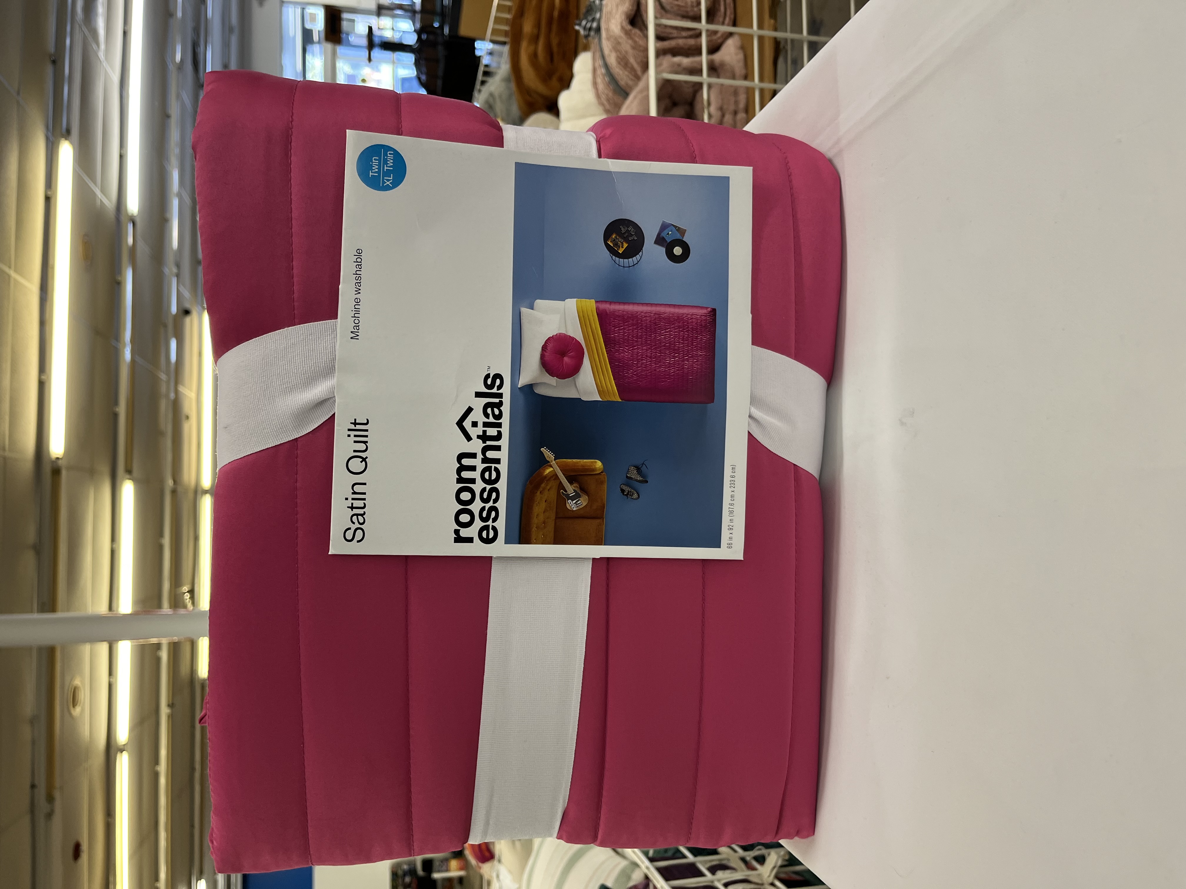 Add an extra layer of coziness to your bed with this Satin Quilt from Room Essentials™. Made from midweight sateen fabric for a soft and luxurious feel, this decorative quilt features soft filling for snug comfort. Featuring an eye-catching print, you can toss it in the washing machine for easy cleaning whenever needed. • Satin quilt • Sateen fabric • Soft filling • Machine-washable design • 100% recycled polyester shell (polyester fill) • Standard 100 by OEKO-TEX certified