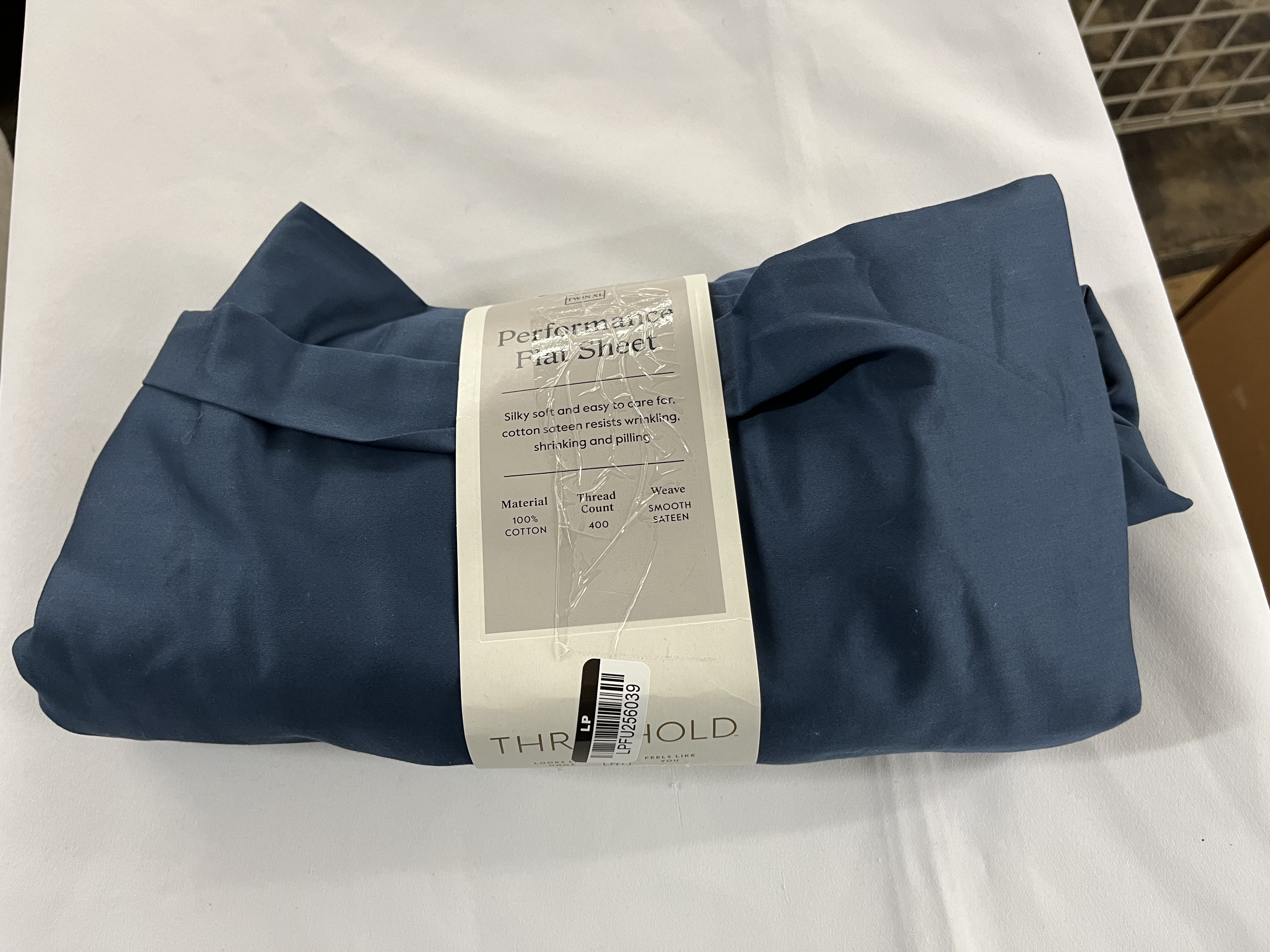 Add some soft shine and sumptuous comfort to your bedding ensemble with the 400-Thread Count Performance Flat Sheet from Threshold™. Made from 100% cotton, this flat sheet brings you year-round comfort, and the sateen finish lends a noticeable sheen to add depth and richness to your bedscape. The sheet has a solid color design that allows for a great range of versatility when mixing and matching with pillows, comforters and fitted sheets of your choice. Plus, the machine-washable construction makes cleaning a breeze. • Solid-hued flat sheet for updating your bedroom • Sateen fabric with 400-thread count adds soft shine and feel to your bedding ensemble • 100% cotton offers year-round breathable comfort • Coordinates with a variety of pillows, comforters, quilts or blankets to complete the look • Machine-washable for easy care and maintenance • STANDARD 100 by OEKO-TEX® certified