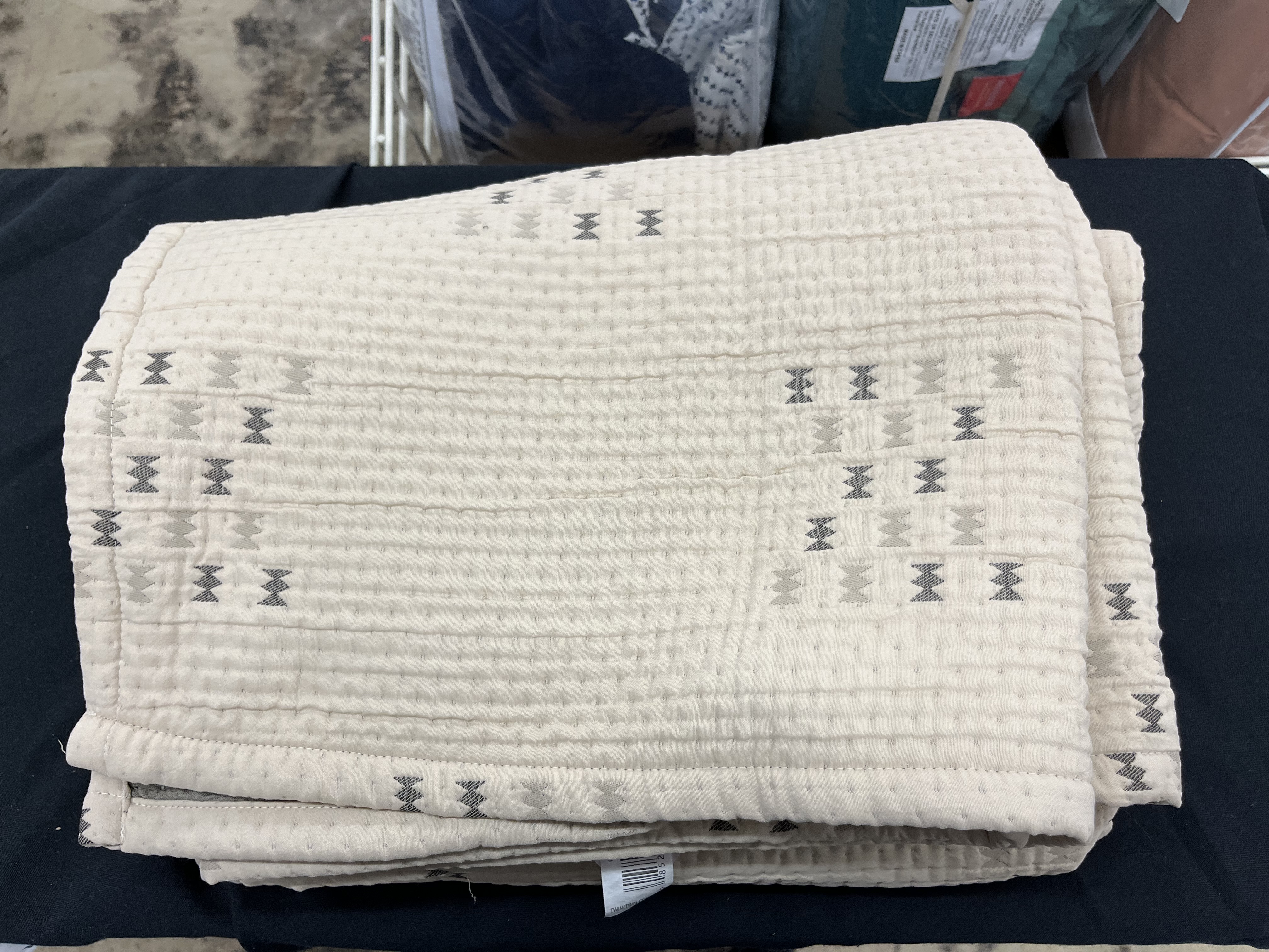 Complete your bedroom decor with the addition of this Gauze Matelasse Quilt and Sham Set from Opalhouse™ designed with Jungalow™. This matelasse bedding set includes one sham and a matching quilt in a solid color for easy coordination with any decor. Featuring a midweight jacquard exterior and backing with soft filling to wrap you in soft comfort, this quilt bedding set has a decorative matelasse eyelet pattern with textured detailing for an elevated look. Plus, a six-inch envelope closure on the sham holds it securely in place while still allowing for easy removal. • Gauze matelasse quilt and sham set • Midweight jacquard fabric • Features eyelet pattern • 6in inner envelope • Soft filling • STANDARD 100 by OEKO-TEX certified