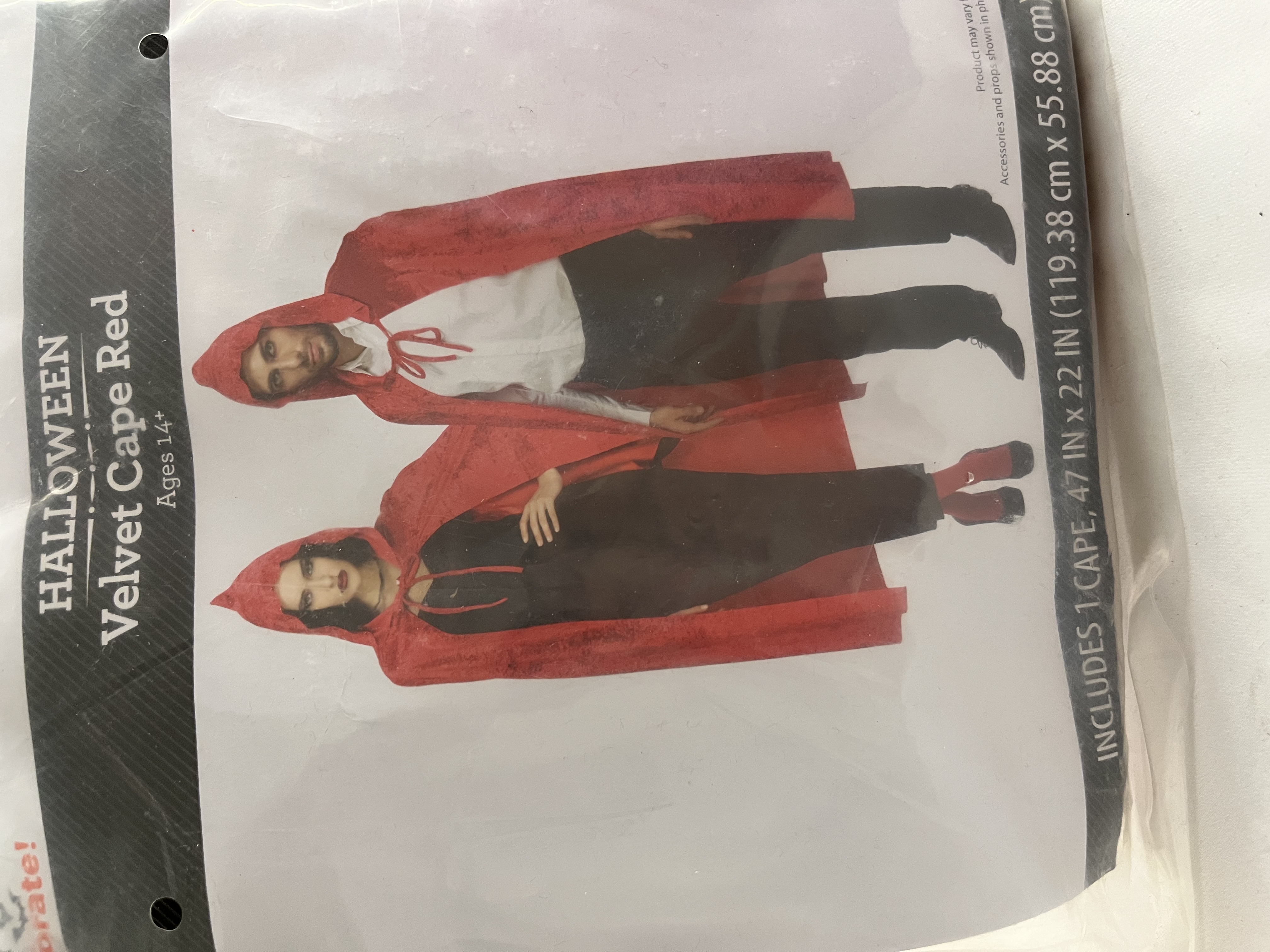 Add a touch of horror and mystery to your costume with this mid length Red Velvet Cape. This sleek cape for adults comes in a red luxurious velvet fabric and an attached red velour hood that ties around the neck with a ribbon for a dramatic look. Don’t be shy to bring both your good and bad side out tonight for a playful glamorous Halloween night.