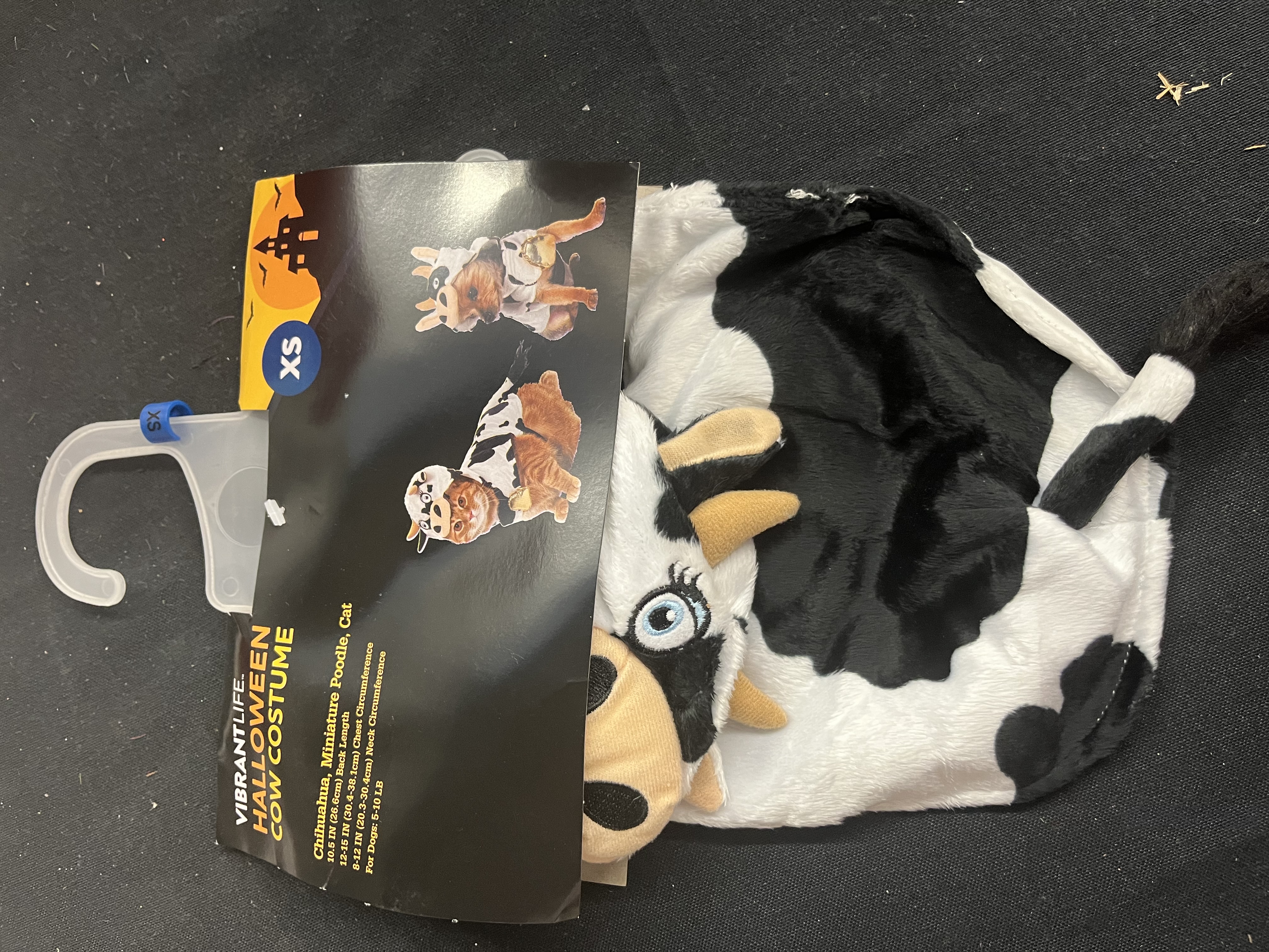 Your pet can join in the Halloween celebrations with the Vibrant Life Cow Pet Costume. This one-piece costume comes with an attached hood for an on-trend and adorable outfit. The outfit features hook and loop closure around the pet's neck, with wide elastic with hook and loop fastener for comfortable, adjustable fit around the pet's belly. Easily find the perfect fit for your pet and let them show up for Halloween parties and trick-or-treating, putting their best paw forward.