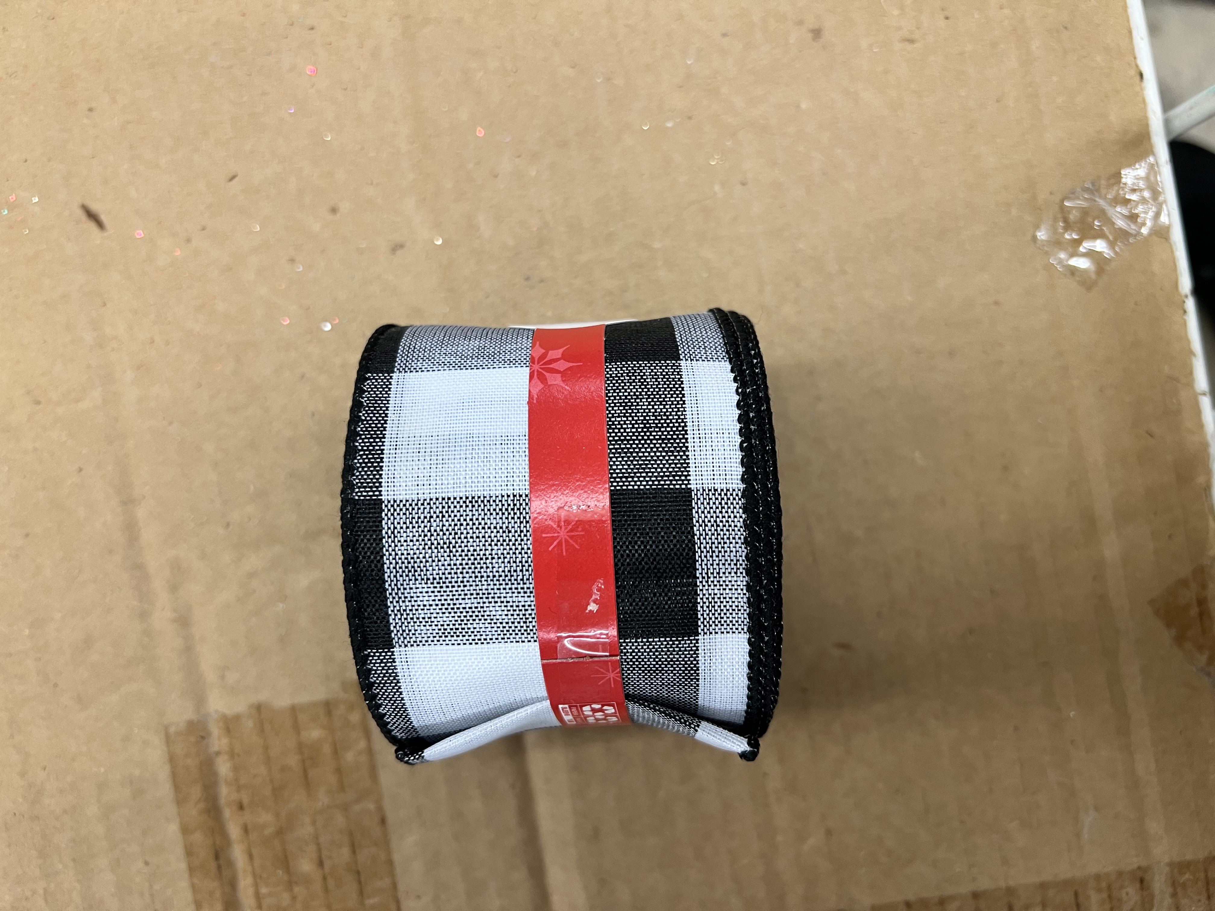 Holiday Time White and Black Check Buffalo Plaid Christmas Ribbon, 25 ft Gives a festive finish to wrapped gifts Versatile ribbon can be shaped into bows to decorate wreaths or gifts or to use as a tree topper For indoor use only Ribbon measures 25' long Product Dimensions: 2.5" x 3.25" x 3.25"